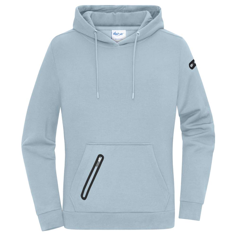 Sudadera interlock de calidad, que ofrece un confort óptimo. Su composición de algodón biológico, poliéster reciclado y elastano asegura un tacto agradable y una buena sujeción. Esta sudadera presenta un bolsillo kanguro con un bolsillo adicional con cremallera, así como un bolsillo con cremallera en la manga izquierda. Los bolsillos con cremallera están bordeados con una banda de tendencia, añadiendo un toque de estilo. Su corte ligeramente ajustado favorece la figura. Esta sudadera también es personalizable por bordado, permitiendo añadir su logotipo, su diseño o cualquier otro elemento gráfico.