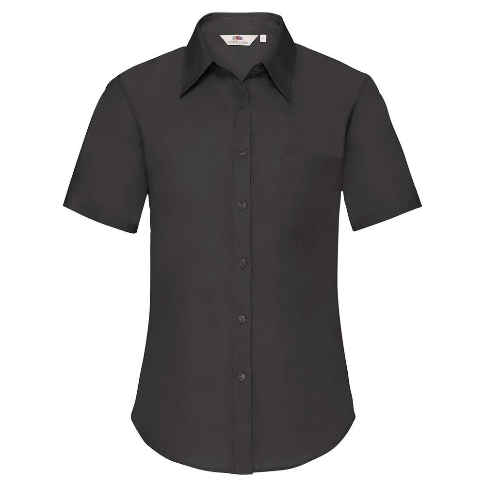 Esta camisa de manga corta está confeccionada a partir de una mezcla de algodón y poliéster, ofreciendo confort y durabilidad. Su corte ajustado, con costuras laterales entalladas y pinzas en la espalda y en el busto, asegura una silueta femenina. Un bolsillo aplanado en el pecho aporta un toque práctico. Diseñada para el uso diario, esta camisa combina confort y funcionalidad.