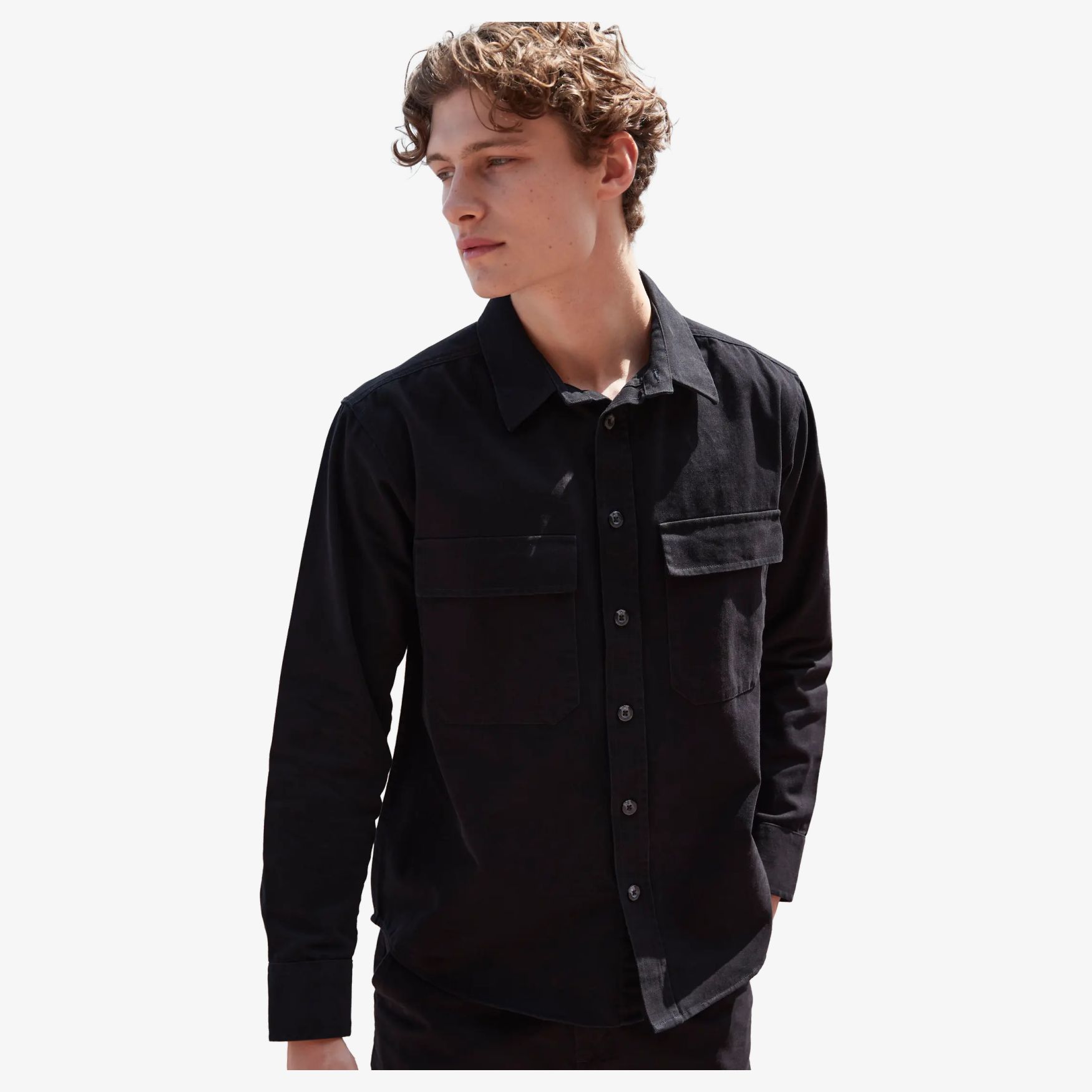 La Drill overshirt es una sobrecamisa de algodón tejido con botones de plástico efecto cuerno, bolsillos de parche con solapa y puños con tapeta abotonada. Canesú en la espalda, doble pespunte, costura de hombro adelantada y dobladillo redondeado.