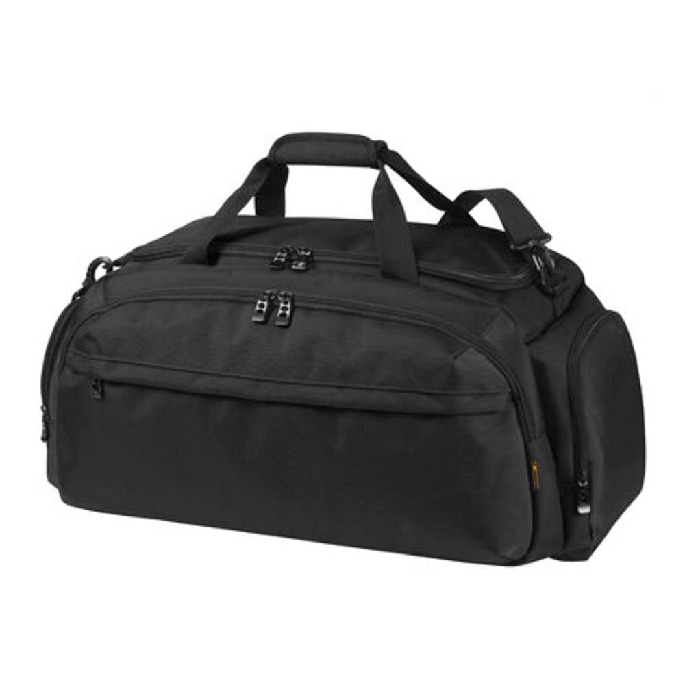 Este bolso de viaje de nylon ofrece un gran compartimento principal con cierre de cremallera en ambos sentidos, así como dos bolsillos delanteros y dos bolsillos laterales, todos equipados con cierres de cremallera. Está dotado de una correa desmontable y ajustable con una almohadilla confortable y soportes inferiores para una mejor estabilidad. Sus dimensiones son de 66 x 32 x 25 cm. Este bolso está diseñado para facilitar tus desplazamientos y tus actividades deportivas. Es posible personalizar este bolso con tu logo o tu visual, lo que lo convierte en un excelente soporte de comunicación para tu marca.