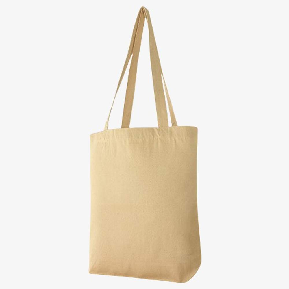Bolsa de lona con asas largas, diseñada para uso diario y el transporte de diversos objetos. Su composición de 100% algodón le confiere una buena resistencia y un aspecto natural. Las dimensiones de esta bolsa son 42 x 38 x 10 cm, ofreciendo un espacio de almacenamiento práctico y suficiente. Su diseño robusto permite soportar una variedad de artículos.