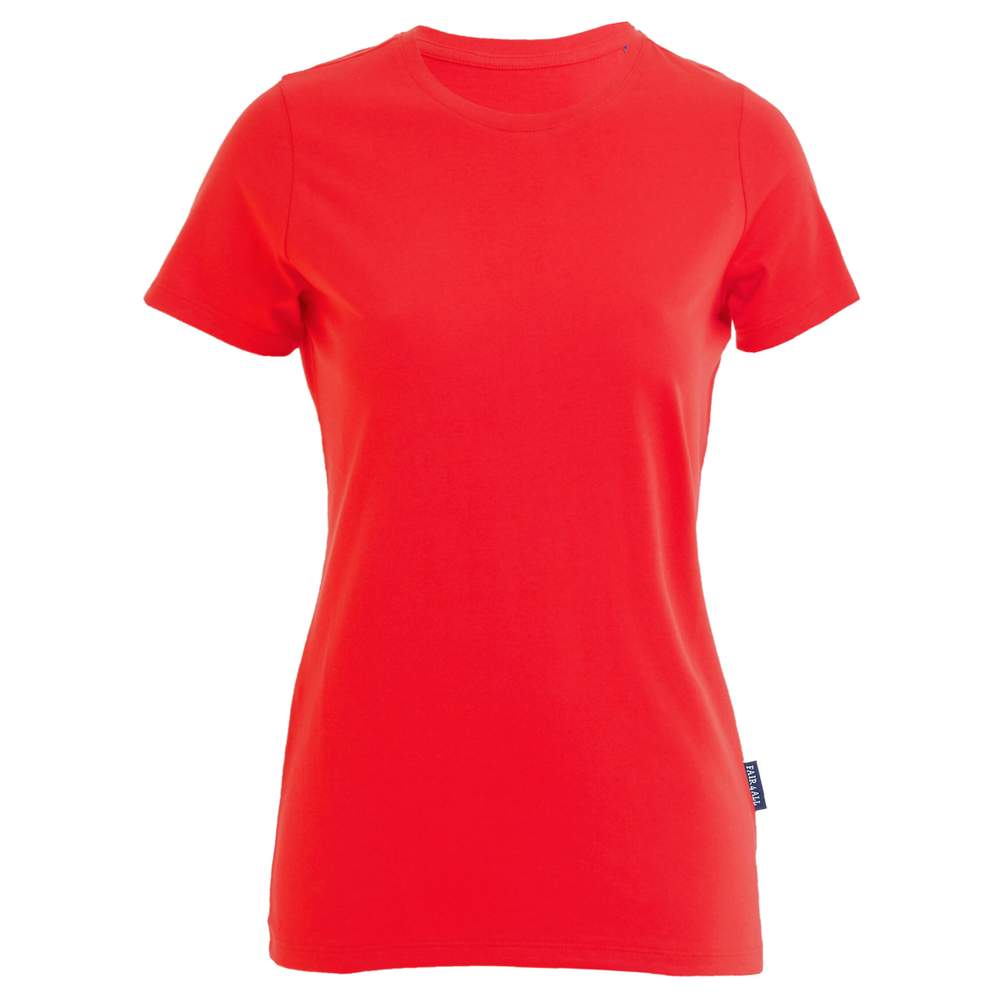 Esta camiseta para mujer presenta un corte moderno ajustado y un cuello redondo. Está confeccionada en algodón peinado y hilado en anillo, ofreciendo un confort óptimo. Las costuras laterales y el contorno del cuello reforzado con costuras dobles aseguran una buena sujeción. La ausencia de etiqueta y la presencia de una etiqueta de tela Fair4All en la costura izquierda contribuyen al confort. El prettratamiento contra la reducción y las pelusas permite conservar el aspecto inicial de la prenda. Esta camiseta es adecuada para un lavado a 60°C y para el lavado industrial. La producción está certificada BSCI.