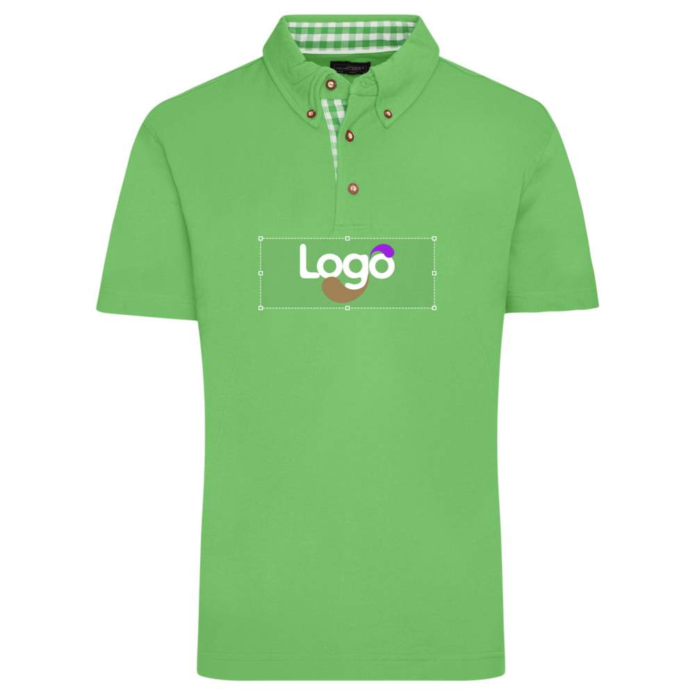 Polo clásico para hombre, de aspecto tradicional. Piqué de calidad fina, confeccionado en algodón peinado ringspun. El cuello presenta un motivo a cuadros en el interior, así como la botonadura a juego. Posee aberturas laterales y botones de imitación de cuerno, una media luna del mismo tono, un cuello button-down y tres botones. Este polo ofrece la posibilidad de personalización en bordado para añadir su logo o imagen.