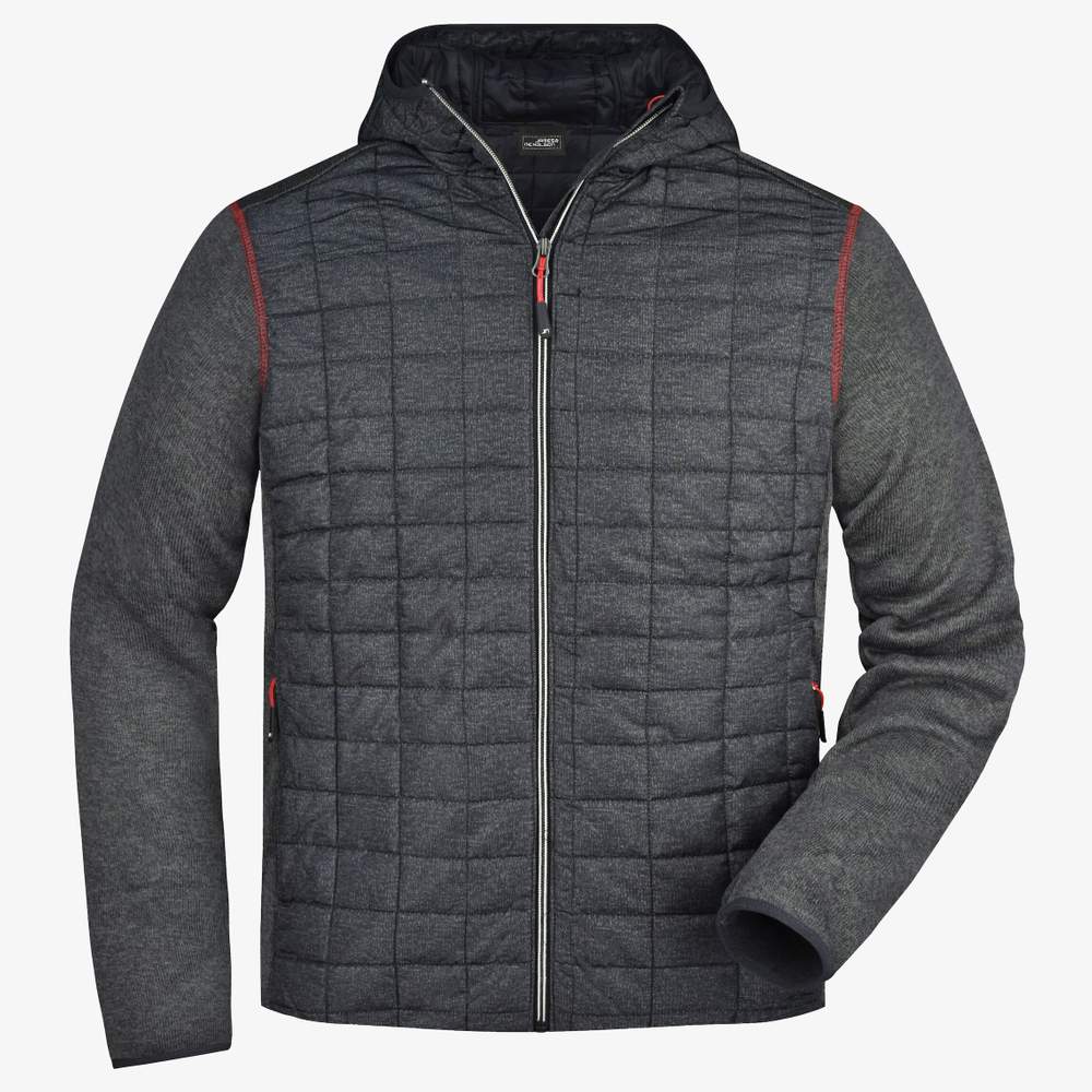 Chaqueta para hombre combinando punto y poliéster. El frente, la espalda y la capucha presentan un patrón de cuadros acolchado, con costuras planas contrastantes en las mangas. La anchura interior de la capucha es ajustable para un confort personalizado. La chaqueta está dotada de una cremallera de longitud completa, ofreciendo una protección adicional contra los elementos. Cuenta con dos bolsillos laterales prácticos, también cerrados con cremalleras, así como dos bolsillos interiores para guardar sus pertenencias. Este modelo está diseñado para un mantenimiento fácil y una durabilidad aumentada.