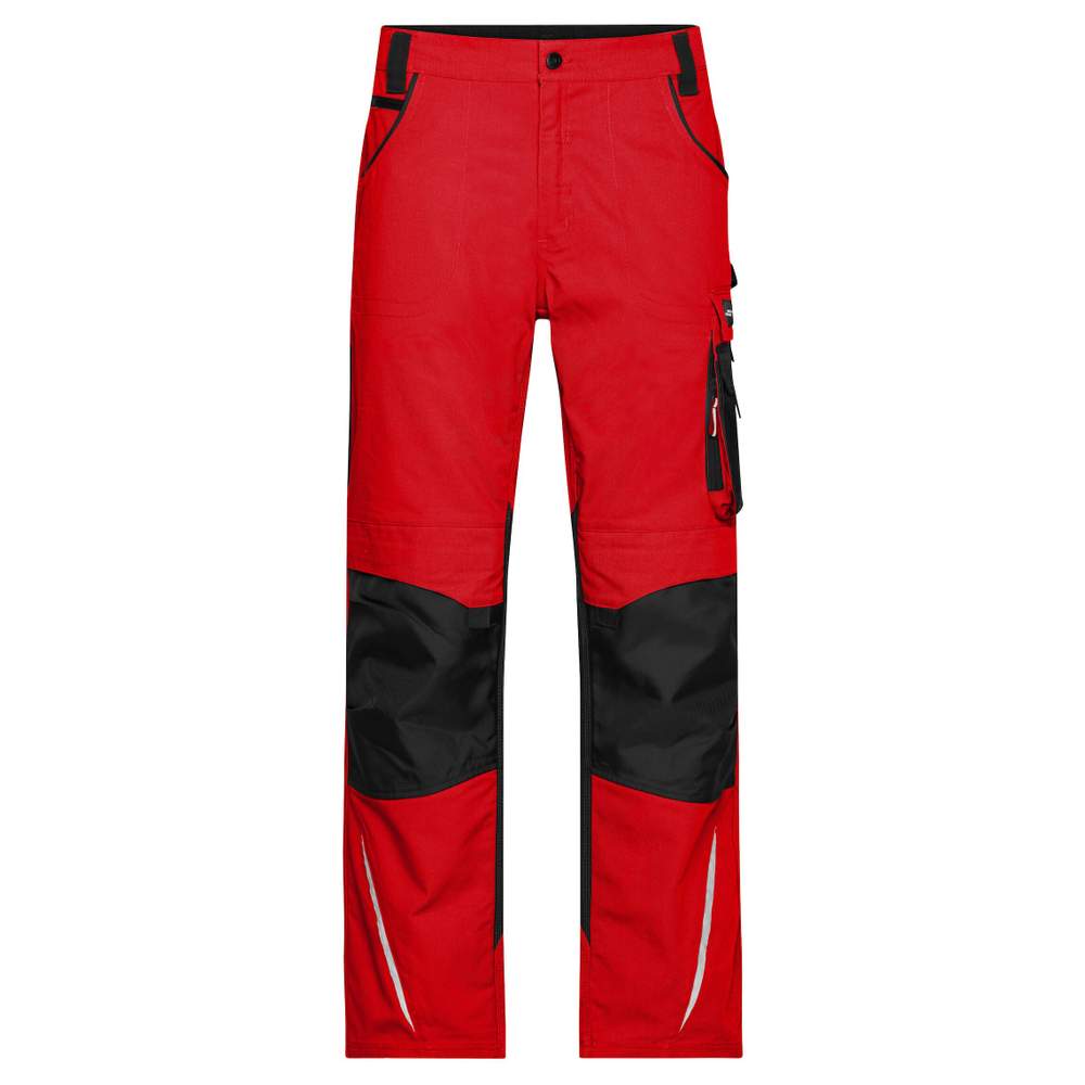 Pantalón de trabajo en tejido mixto robusto y duradero, dotado de una cintura elástica con pasadores para cinturón. Incorpora un bolsillo CORDURA® reforzado a la altura de las rodillas y cuenta con costuras triples para una mayor resistencia al desgarro. Este pantalón ofrece una gran capacidad de almacenamiento gracias a sus numerosos bolsillos: bolsillos con ribete, variados bolsillos para herramientas, dos bolsillos con cierre, bolsillo para metro, bolsillos para bolígrafo y bolsillo para teléfono móvil. Elementos reflectantes están presentes en la parte delantera y trasera (sin función de protección, no constituye un EPI).