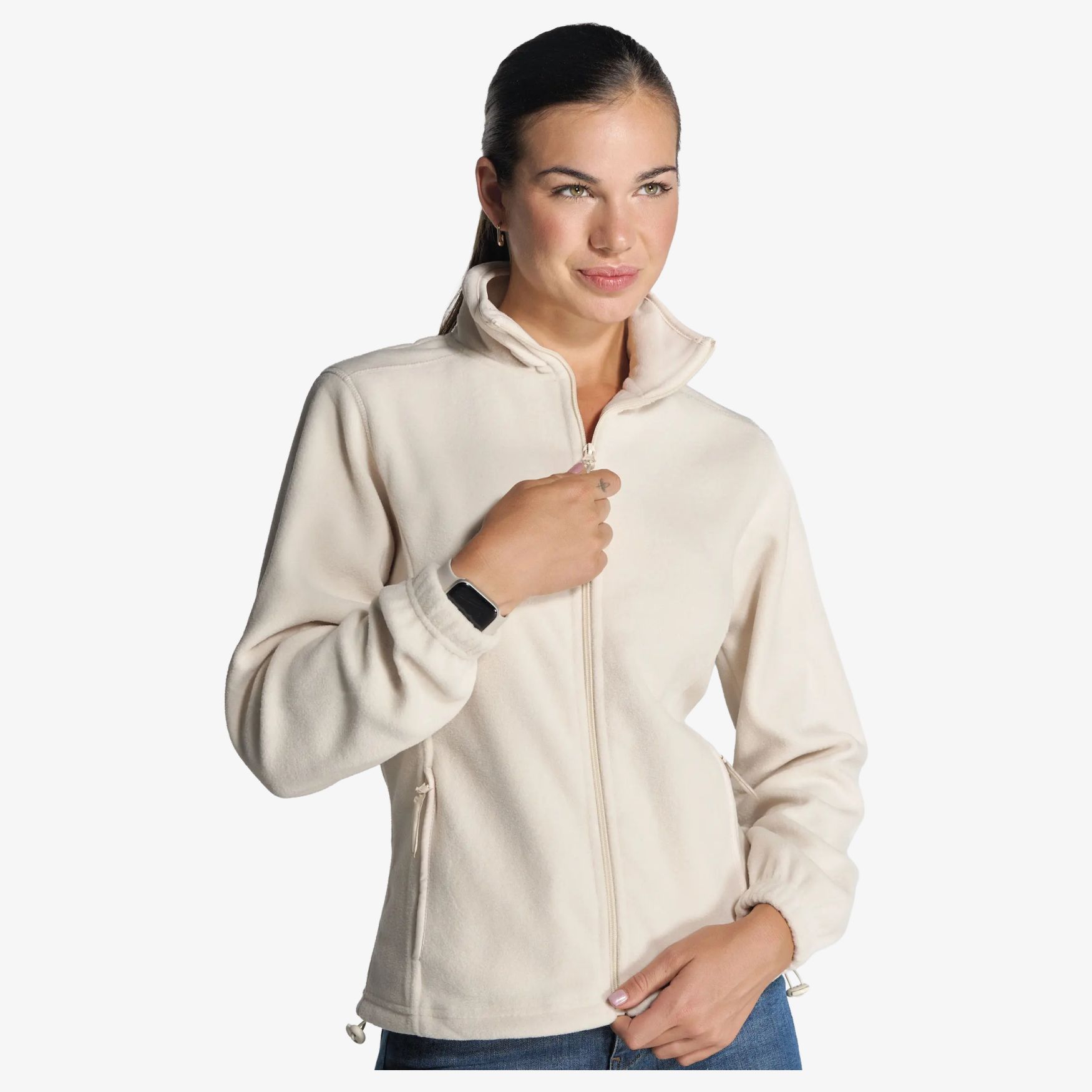 Chaqueta polar mujer diseñada para ofrecer confort y calor. Presenta una cremallera grande en el frente, permitiendo un fácil uso y quitar. Dispone de dos bolsillos con cremallera, prácticos para guardar pequeños objetos de manera segura. Su corte ajustado ofrece una silueta favorecedora. El tratamiento anti-pelusa contribuye a mantener el aspecto cuidado de la prenda. Está equipada con un cordón de ajuste con topes, permitiendo ajustar el ajuste, y puños elásticos para una mejor retención del calor.