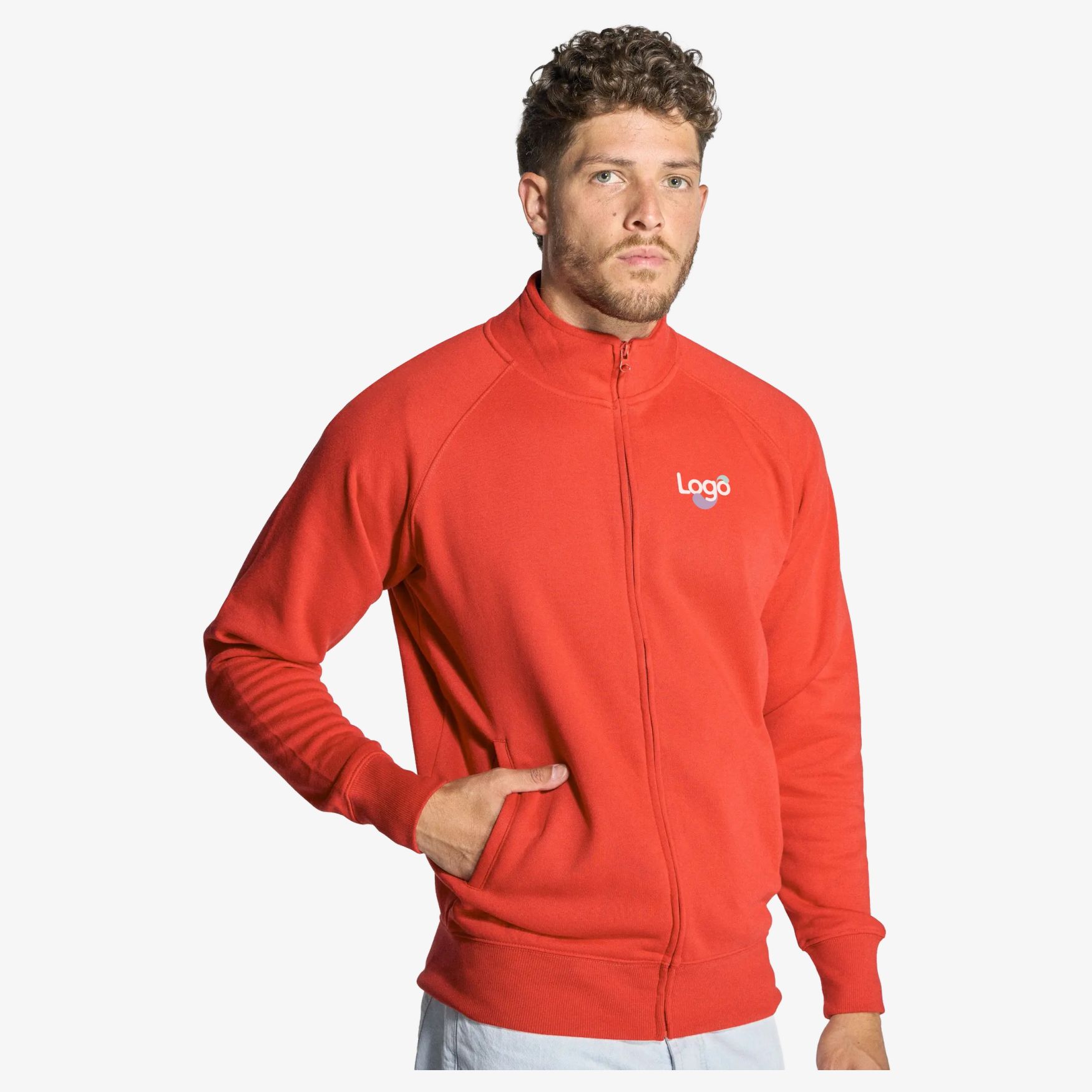 Sudadera grande cremallera. Este modelo presenta una gran cremallera, bolsillos laterales y bordes de punto en las mangas y la cintura para un ajuste cómodo. El cuello alto añade un toque de estilo. La composición en 65% poliéster y 35% algodón ofrece un buen equilibrio entre confort y durabilidad. Esta sudadera es ideal para una personalización en bordado, permitiendo añadir su logo, un visuel o cualquier otro elemento gráfico para una comunicación efectiva.