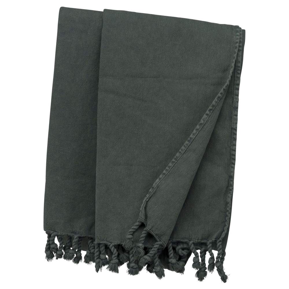 Toalla de algodón descolorido con un aspecto vintage. Dimensiones de 165 cm por 90 cm. Este producto ha sido sometido a un tratamiento específico para obtener un aspecto envejecido, lo que puede causar variaciones de color y hacer que cada ejemplar sea único. Los flecos están retorcidos y asegurados con un nudo. Este tejido puede ser utilizado de diferentes maneras: toalla de playa, toalla de baño, manta ligera o accesorio de decoración.