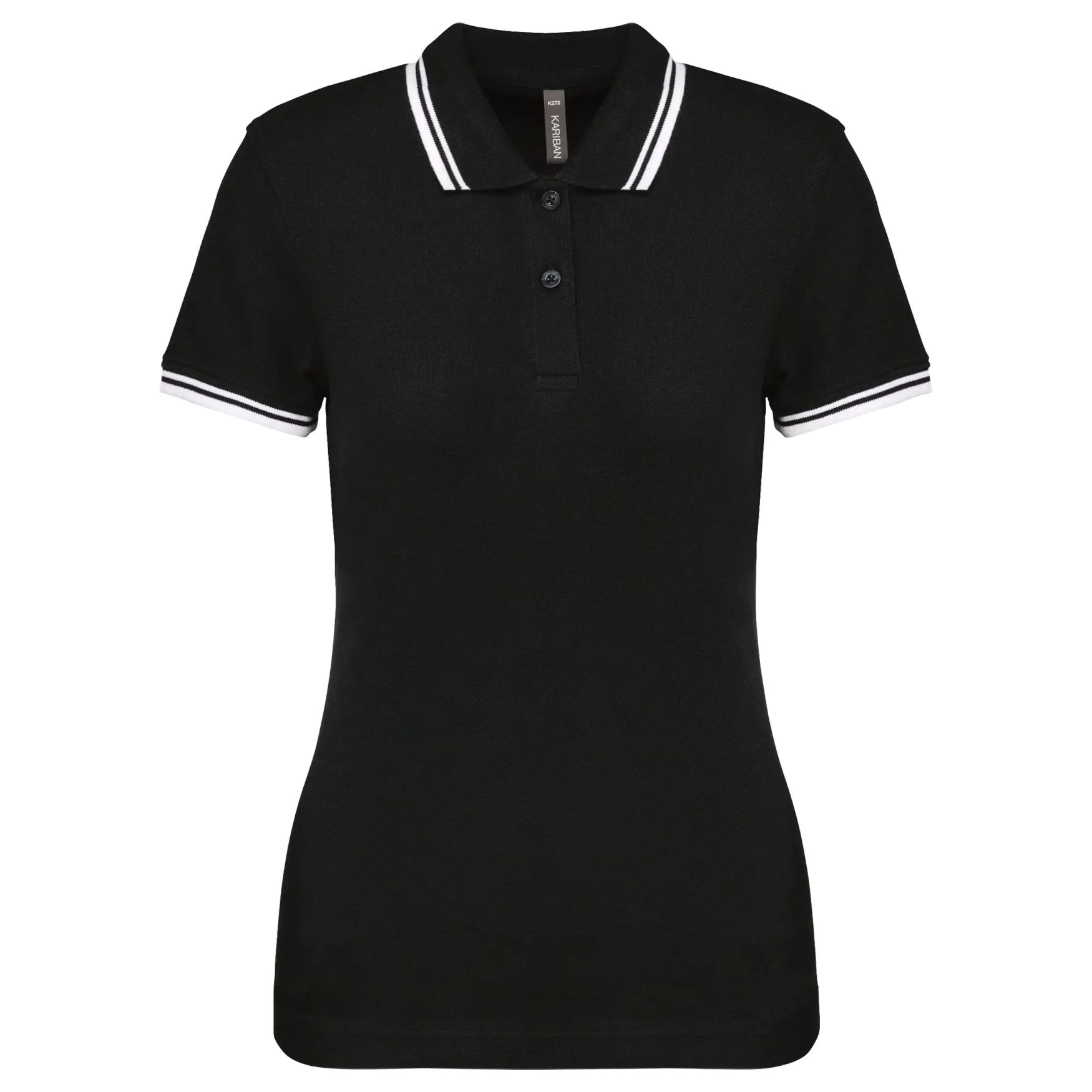 Polo Femme Manches Courtes à Liserés Contrastés Polo mujer ka-k273 personalizable - Black white