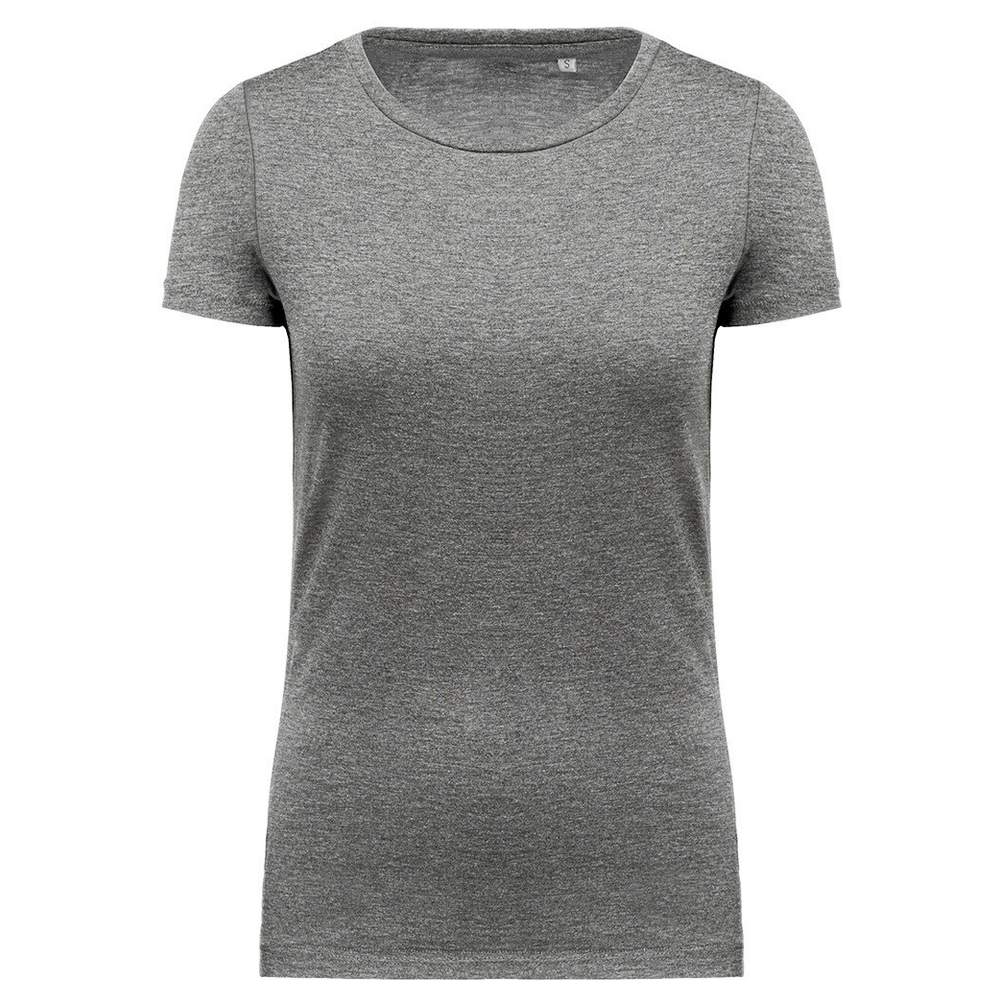 Camiseta de mujer confeccionada en algodón Supima®. Este tejido ofrece una gran finura y una calidad apreciable. El corte ceñido aporta una silueta favorecedora. El cuello redondo está adornado con una banda de limpieza del mismo tono. Los acabados cuidados incluyen costuras decorativas en el bajo de las mangas y de la prenda. Esta camiseta está diseñada para un confort óptimo y una mayor durabilidad.