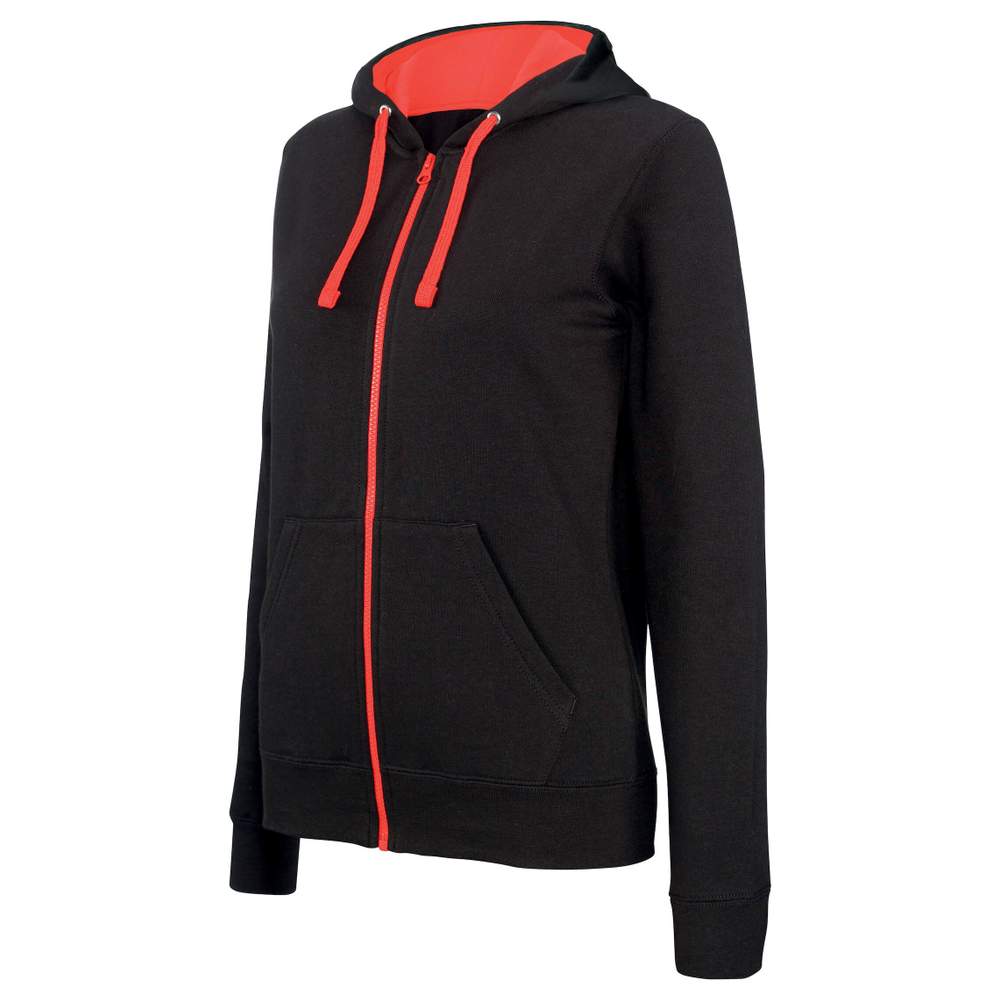Sudadera con cremallera capucha contrastada mujer, fabricada en 80% algodón peinado y 20% poliéster. Presenta una construcción en moldeado para un mayor confort. Este modelo cuenta con un bolsillo tipo marsupial y un paso para auriculares a nivel del cuello. Los puños y el bajo del jersey aseguran un ajuste óptimo. La capucha es forrada y contrastada, con un cordón de ajuste para un mantenimiento personalizado. La cremallera YKK® contrastada añade un toque estético. Esta sudadera ofrece un confort diario y libertad de movimiento.