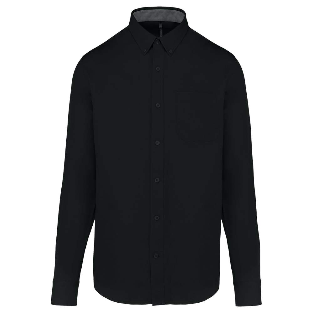 Esta camisa KARIBAN está confeccionada en 100% algodón, ofreciendo una sensación suave y agradable. Presenta un corte clásico con una punta de cuello abotonado, botones del mismo color y un bolsillo en el pecho. El interior del pie del cuello y las muñecas es contrastado en color Oxford silver. La espalda está dotada de 2 pliegues para la comodidad y una pieza acolchada para un mejor ajuste y una mejor sujeción. Las costuras dobladas y las muñecas ajustables con solapa abotonada aportan un acabado cuidado.