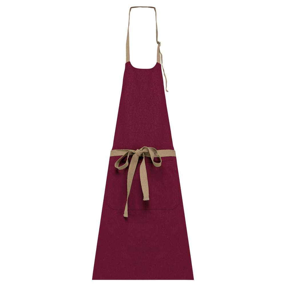 Delantal ecoresponsable unisexo. Bucles de ajuste de metal para ajustar la longitud del delantal. Gran bolsillo delantero dividido en dos compartimentos. Cinturón y tirantes de algodón reciclado, color Hemp para todos los colores. Tela procedente de un proceso de reciclaje, que presenta ligeras variaciones de color, para una pieza única.