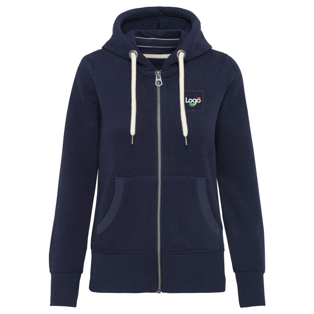 Sudadera de algodón poliéster viscosa con cremallera y capucha para mujer personalización kv2307 - Vintage navy