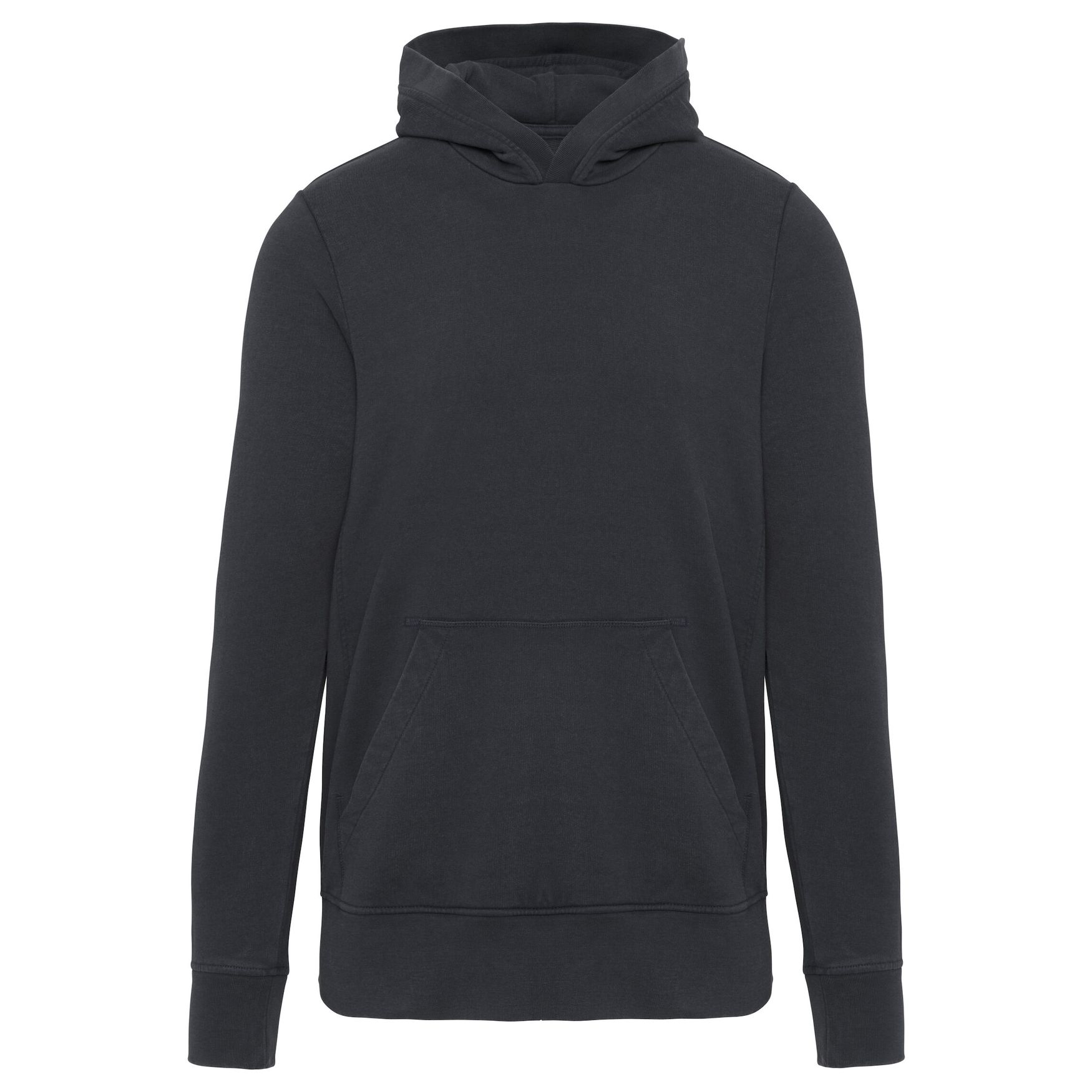 Sudadera con capucha para hombre en felpa sin perchado tipo French Terry, con capucha forrada cruzada en la parte delantera y bolsillo canguro. Tratamiento especial que aporta un aspecto lavado, con posibles variaciones de una prenda a otra. Acabados de canalé en los refuerzos laterales, en el bajo y en los puños.
