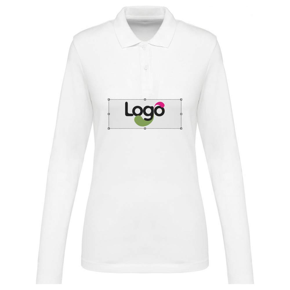 Polo de manga larga supima® para mujer PREMIUM personalización pk203 - White