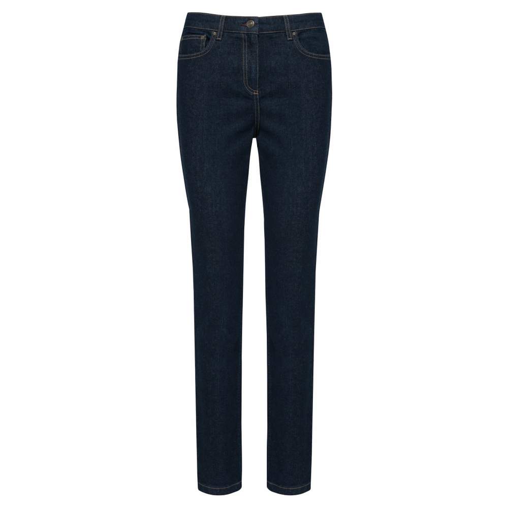 Jean para mujer. Cierre cremallera con botón metálico, remaches de metal del mismo color. Dos bolsillos delanteros, uno con bolsillo de ticket. 2 bolsillos traseros aplastados. Costuras contrastadas burdeos. Cinturón con hebillas y parte interior de banda contrastada en la parte trasera. Corte recto. La prenda está lavada con un tratamiento específico que implica variaciones de color de una pieza a otra.