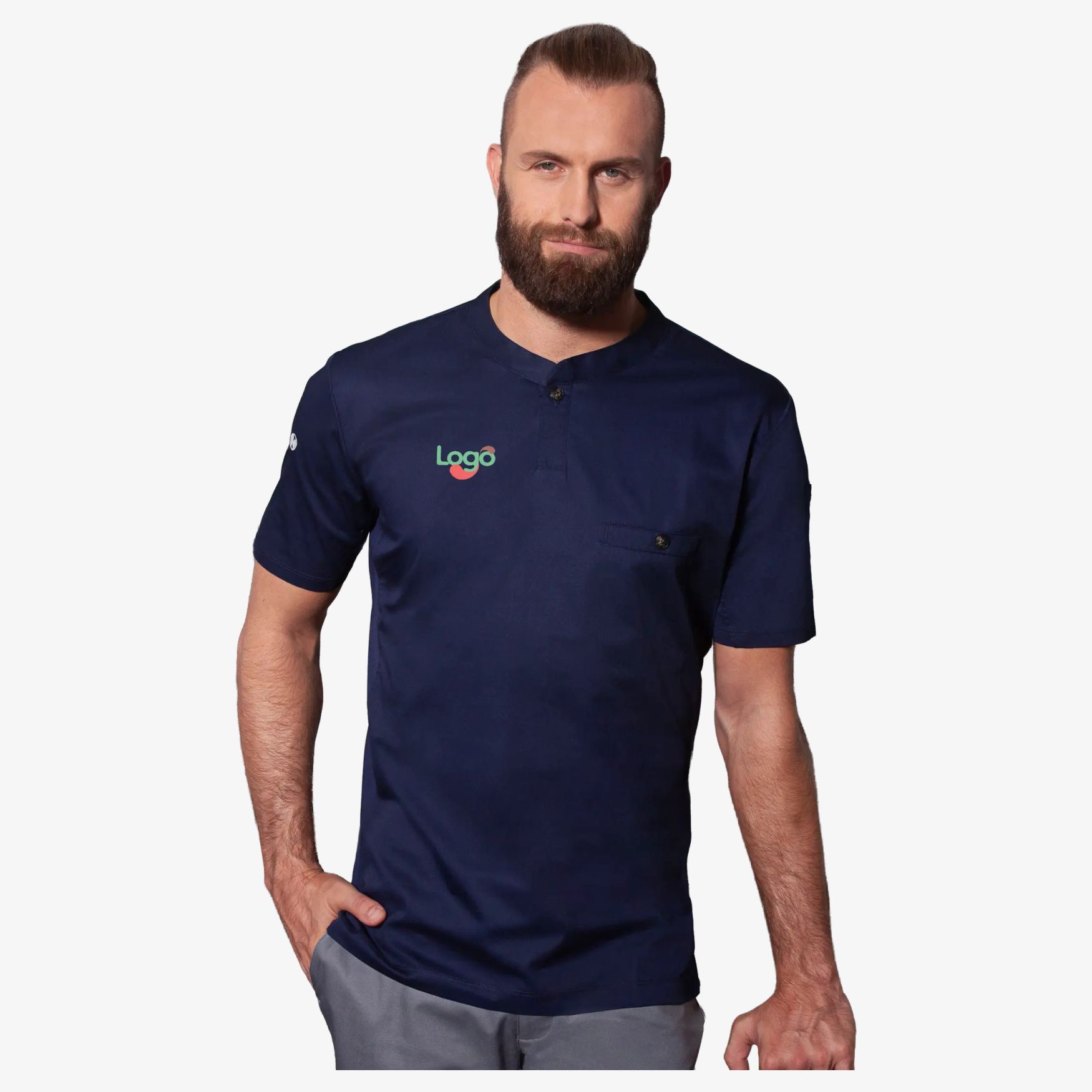 The short sleeve work tee-shirt features a fitted cut with a front of 60 % cotton and 40 % polyester and a back in piqué polyester jersey. It combines breathability and moisture management while offering resistance to stubborn stains.