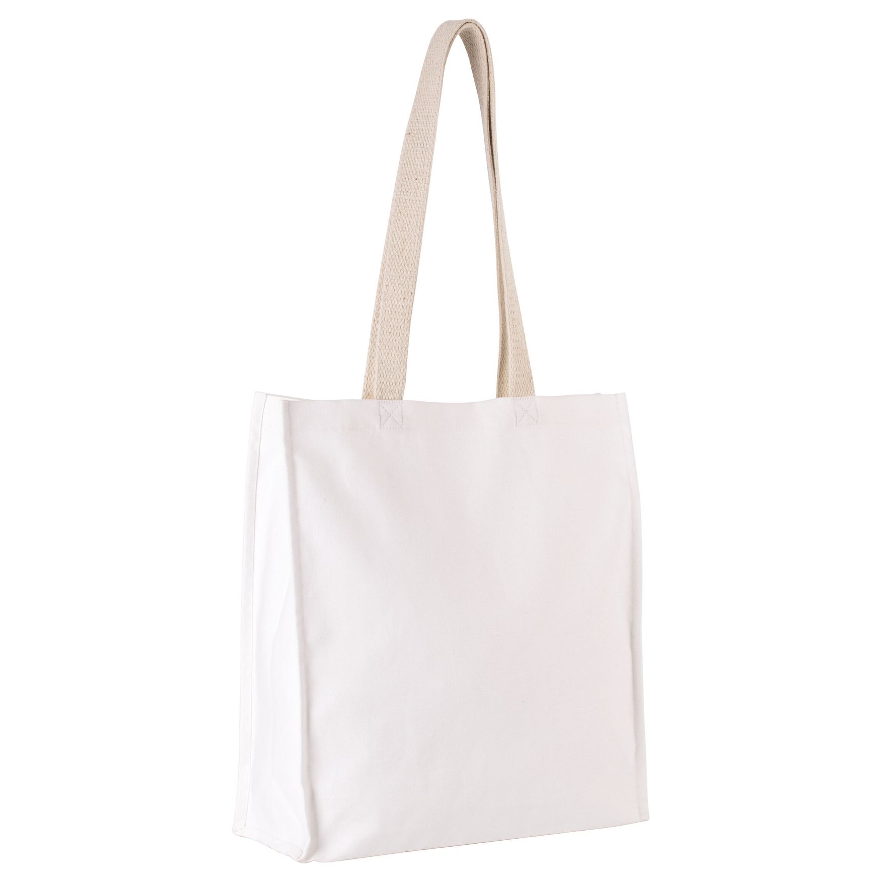 Bolsa de mercado en algodón lona, base ancha con sofá y asas largas de 70 cm en algodón color natural. Dimensiones : 35x13x39 cm.