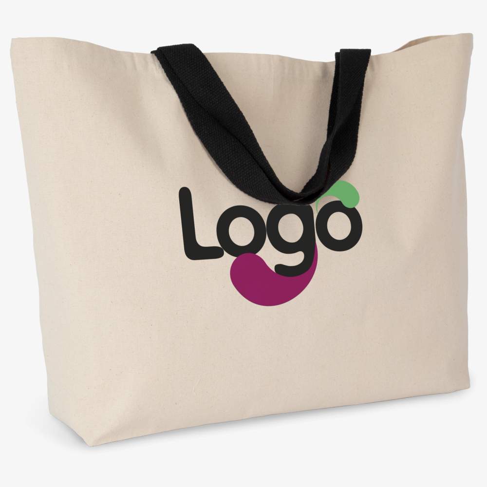 Bolsa de compras clásica, tamaño extra grande. Asas de cinta de algodón en colores contrastantes. Dimensiones: 70 cm x 15 cm x 48 cm. Capacidad: 50 litros. Composición: 100% algodón. Esta bolsa ofrece una gran capacidad para tus compras o cualquier otro uso diario. Está diseñada para ser duradera y reutilizable. Posibilidad de personalización en bordado para un resultado único y profesional.