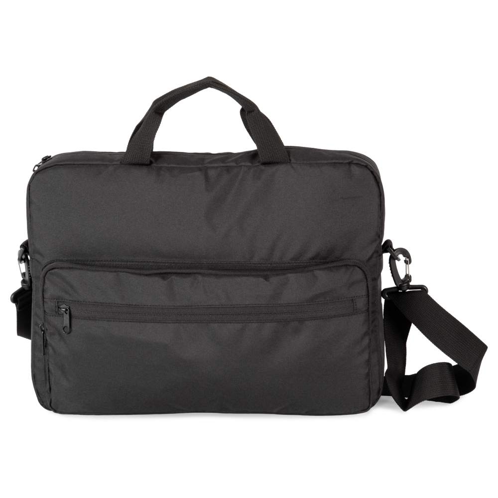 Bolsa de trabajo diseñada a partir de 60% de poliéster reciclado. Ofrece un compartimento principal acolchado para alojar un ordenador portátil hasta 15 pulgadas, asegurando una protección durante los desplazamientos. También dispone de un doble bolsillo frontal con cremallera para un acceso rápido a los efectos personales. Una lengüeta trasera permite fijar la bolsa en el asa de un trolley, facilitando así el transporte. Su capacidad de 7 litros la convierte en una aliada práctica para el día a día. Sus dimensiones son de 39 cm x 6 cm x 29 cm.