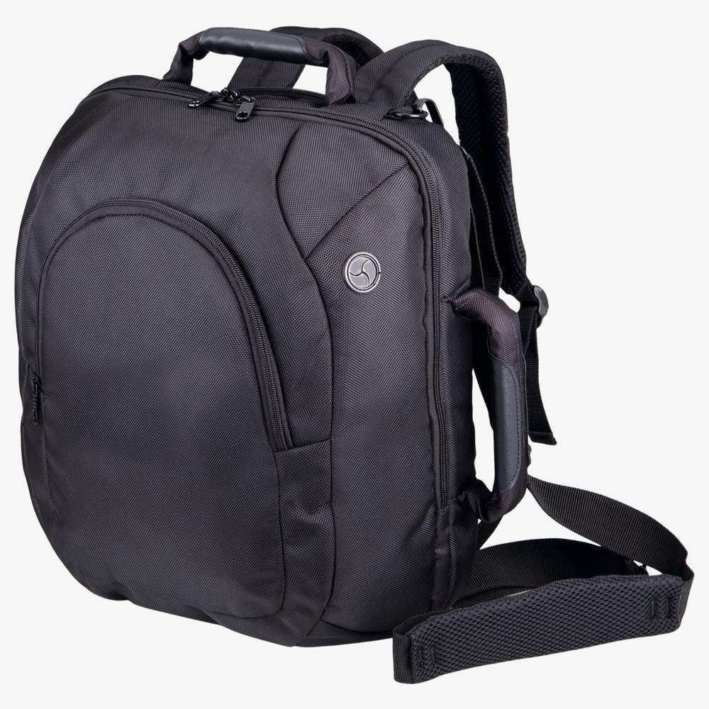 Mochila ordenador portátil/porte documentos de doble uso, que puede transformarse en mochila. Diseñada en poliéster 1680D con revestimiento PU. Incluye correas ocultas, un refuerzo de espalda acolchado, un sujetador para maleta con ruedas en la espalda, una correa ajustable y desmontable con confort de hombro, así como asas reforzadas y acolchadas. Dispone de una bolsa frontal multifuncional, un compartimento central completamente acolchado para ordenador (17" máximo) y documentos, una apertura para auriculares y un llavero.