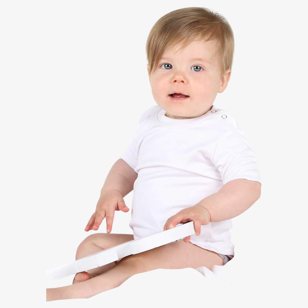 Camiseta de bebé de manga corta, fabricada en interlock 100% poliéster. El cierre de presión en el hombro facilita el vestido y ofrece un mayor confort. El interlock suave y elástico asegura una buena libertad de movimiento. Esta camiseta está diseñada para evacuar la humedad, manteniendo así al bebé seco y cómodo. Este modelo es adecuado para niños pequeños y ofrece un confort óptimo para sus actividades diarias.