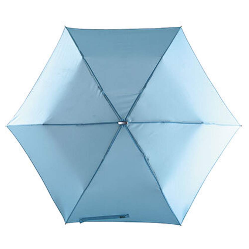 Mini paraguas de bolsillo con 6 paneles con estructura antiretorno. El diámetro es de aproximadamente 88 cm. Está equipado con un botón de color plateado y varillas de aluminio de 3 piezas con extremos de fibra de vidrio. Las puntas son de metal y el cierre está asegurado por una banda auto-agarrante. El paraguas está hecho de poliéster y se entrega en una bolsa de polietileno.
