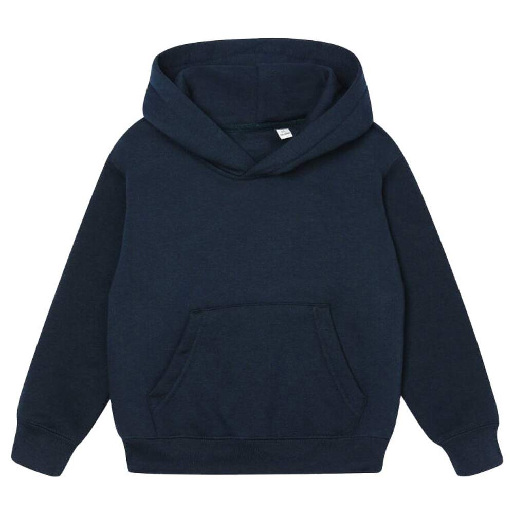 Sudadera infantil confeccionada a partir de una mezcla de algodón y poliéster. Este modelo presenta un corte unisex, mangas montadas y una capucha de doble capa para mayor comodidad. Está dotada de un bolsillo práctico en la parte frontal y de muñecas y bajo ribeteados para un ajuste seguro. Una anilla de suspensión está presente en el cuello. La cinta de limpieza a rayas es del mismo color. La etiqueta de tamaño es desprendible. La etiqueta de cuidado es de algodón orgánico con un código QR para seguir la cadena de suministro.