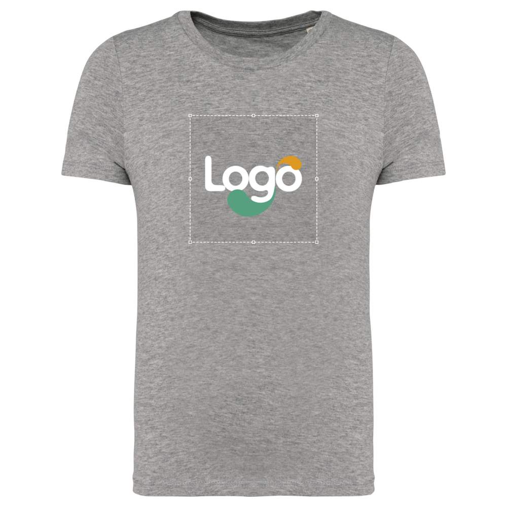 Esta camiseta para niño está confeccionada en algodón peinado ringspun, ofreciendo un tacto suave y un confort óptimo. Su corte recto con costuras laterales asegura una buena sujeción, mientras que el ribete de punto 1*1 en el cuello y las dobles costuras en los extremos de las mangas y del vestido refuerzan su durabilidad. El refuerzo en el hombro con la materia principal garantiza un mantenimiento óptimo. Su composición de algodón biológico al 100% lo convierte en una opción responsable y respetuosa con el medio ambiente. Esta camiseta es ideal para la personalización con su logo, visual o mensaje.