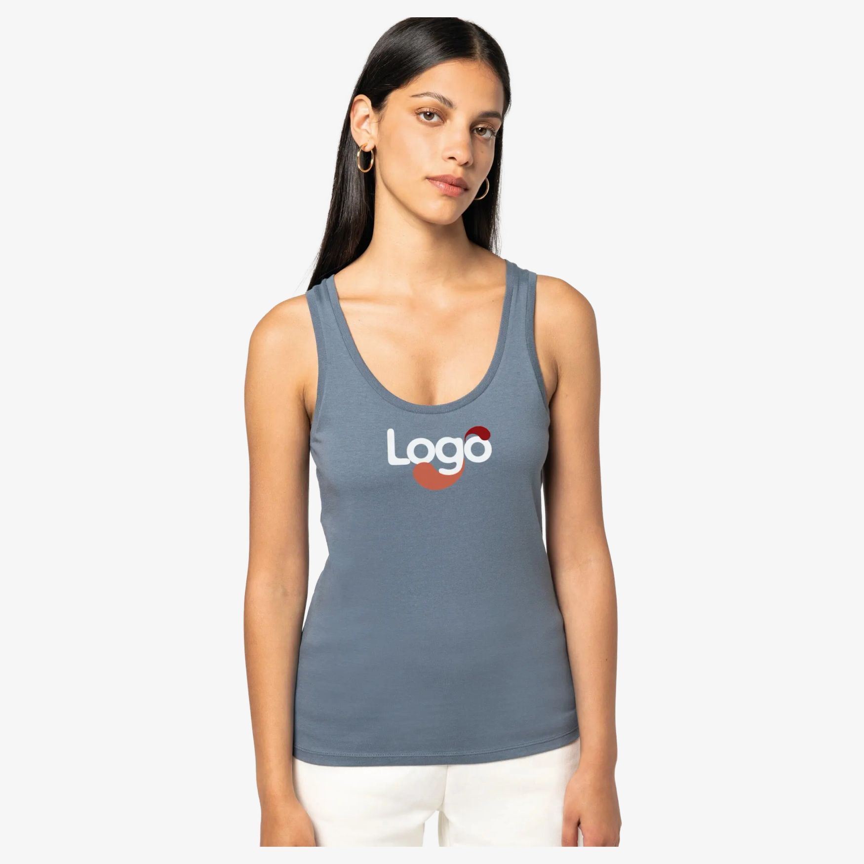 Este top sin mangas para mujer está confeccionado en algodón peinado ringspun. Presenta un corte ligeramente ajustado con costuras laterales para una silueta favorecedora. El cuello y las bocamangas están ribeteados con un borde de punto 1x1 para un confort óptimo. Una banda interior de limpieza en la misma materia asegura un acabado cuidado. La costura doble aguja en el bajo del vestido refuerza su durabilidad. Su composición garantiza un tacto suave y respetuoso con el medio ambiente. Este top es ideal para la personalización en bordado, permitiendo añadir su logo, un diseño o cualquier otro elemento gráfico para una comunicación efectiva.