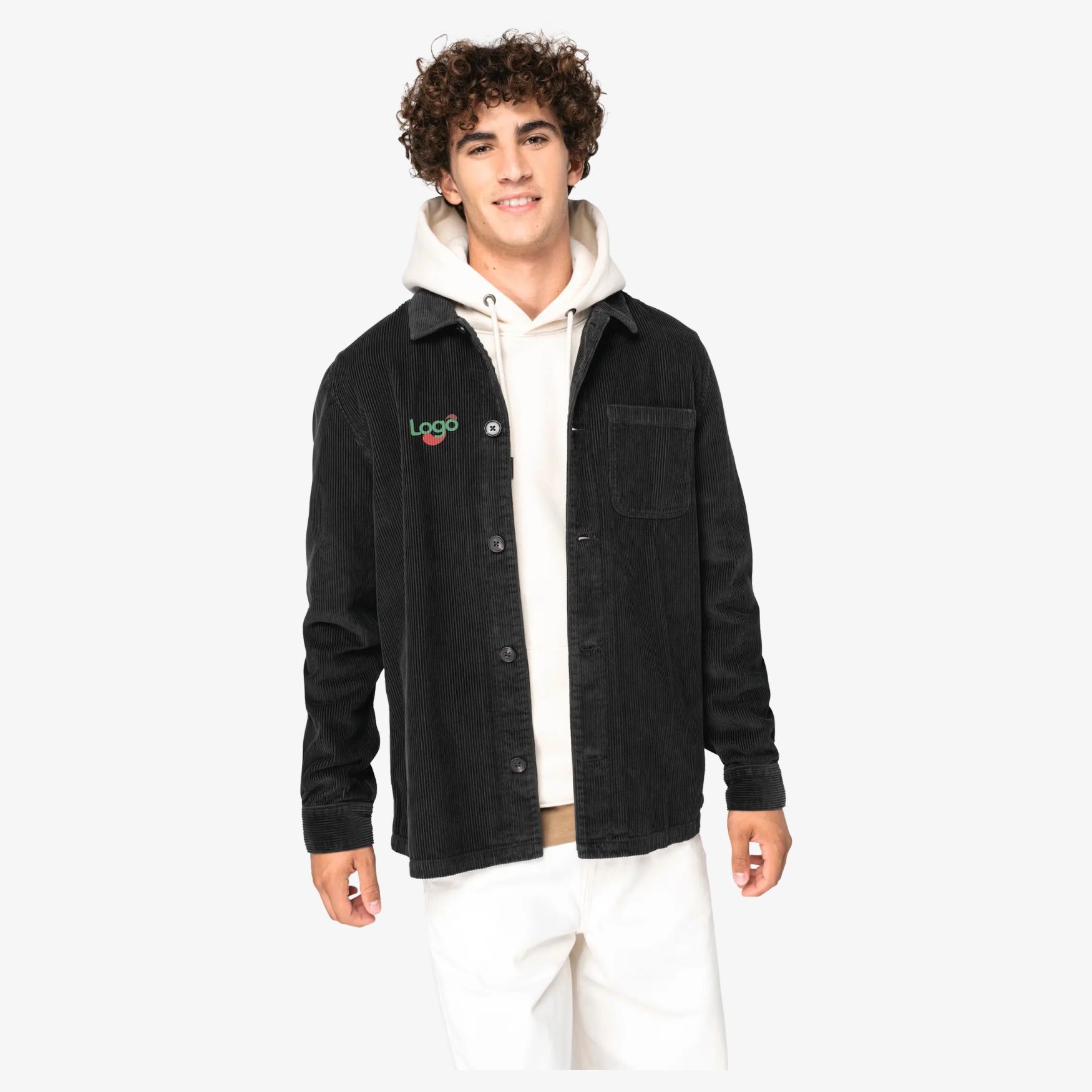 La Chaqueta de Pana Acanalada en pana acanalada se usa a diario con un corte estándar. Bolsillo de pecho de parche en el lado del corazón, cuello con pie de cuello fantasía y canesú trasero. Teñido después del montaje: posibles variaciones entre piezas y riesgo de desteñir en contacto con superficies o prendas claras. Personalización posible.