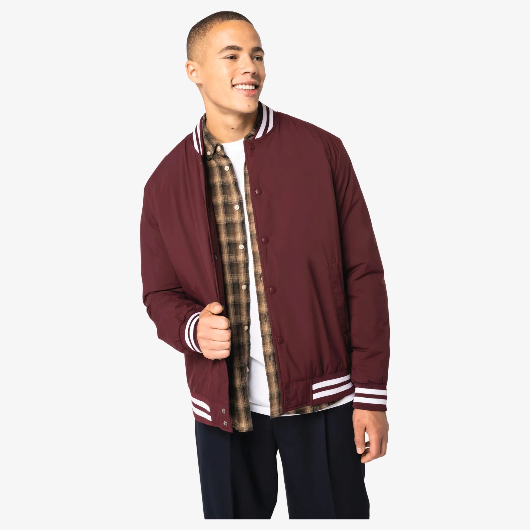 La chaqueta teddy acolchada es una chaqueta teddy acolchada de corte estándar, con cuello teddy y cierre de botones a presión. El tejido repelente al agua y el forro acolchado son adecuados para un uso diario, con bolsillos delanteros y bolsillo interior con cremallera.
