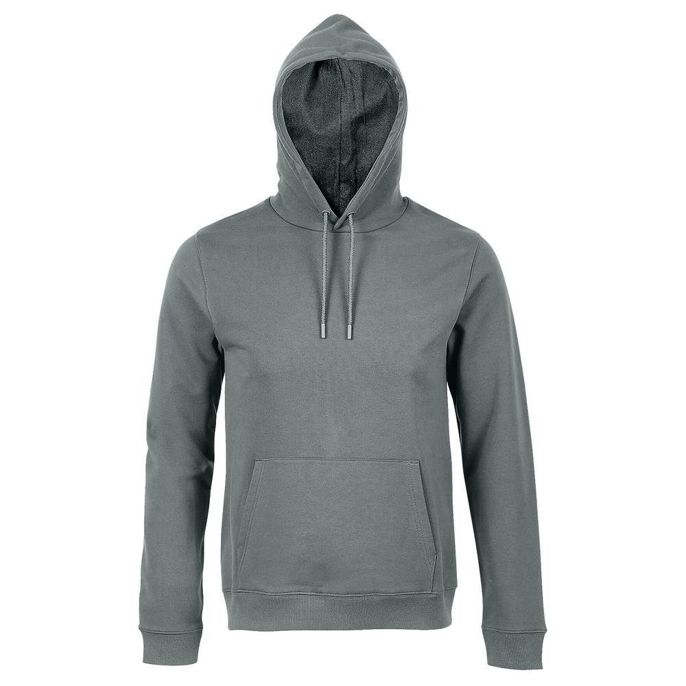 Sudadera con capucha para hombre. Modelo con bolsillo kanguro, capucha y cordones ajustables. Ojal y punta a juego con el color del tejido. Forro de jersey. Terminación en ribete 2x2 al nivel de las muñecas y la base. Media luna y banda de limpieza en el interior del cuello. Material French Terry. Composición 85% algodón peinado y 15% poliéster.