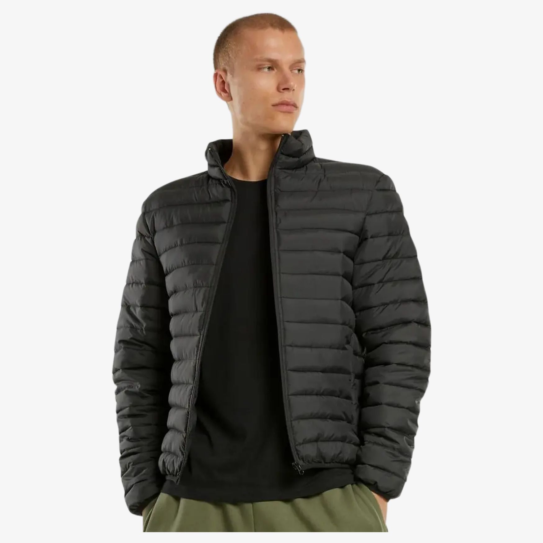 La Light puffer jacket nm031 es una chaqueta acolchada ligera, adecuada para entretiempo. El cuello alto limita la exposici\u00f3n al viento y al fr\u00edo, mientras que el corte recto facilita la superposici\u00f3n. Los pu\u00f1os el\u00e1sticos mejoran el ajuste en las mu\u00f1ecas.