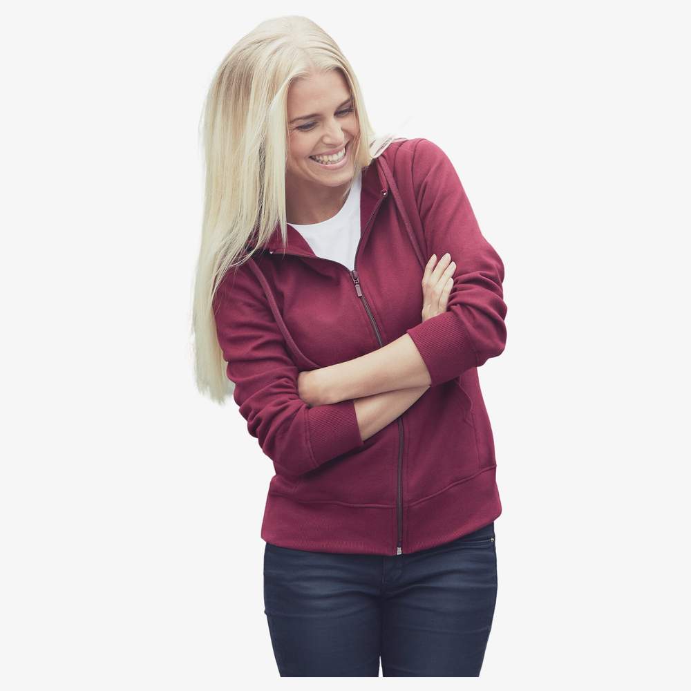 O83301 - Sudaderas con cremallera para mujeres de algodón orgánico o83301 - bordeaux