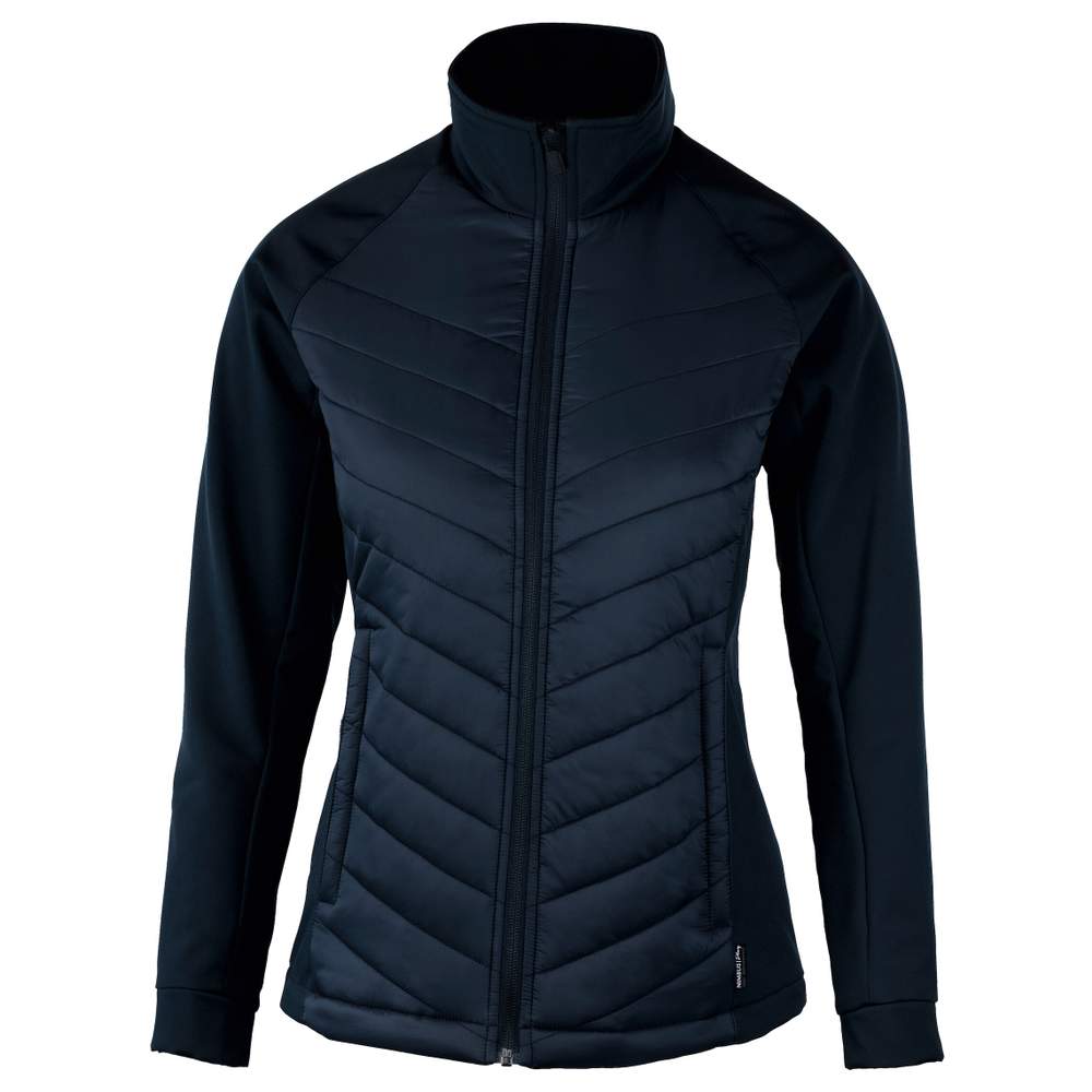 Bloomsdale para mujer es una chaqueta híbrida polivalente con un corte deportivo pensado para ser llevado tanto en el trabajo como fuera de él. Tan elegante como práctica, esta chaqueta es un añadido indispensable a tu guardarropa. Las mangas y los paneles laterales softshell le aportan estabilidad sin añadir peso ni volumen excesivos, mientras que el aislamiento en fibras ligeras Sorona® Aura hacen de este vestido deportivo una pieza de elección para llevar a diario. Este modelo es lo suficientemente cómodo para ser llevado todo el día, y lo bastante elegante para integrarse en la tendencia athleisure. Cierre de cremallera reversible con tira metálica que lleva el logotipo. Interior de las muñecas en jersey de lycra elástico. Relleno acolchado Sorona® Aura. Tejido reciclado. Tratamiento repelente al agua.