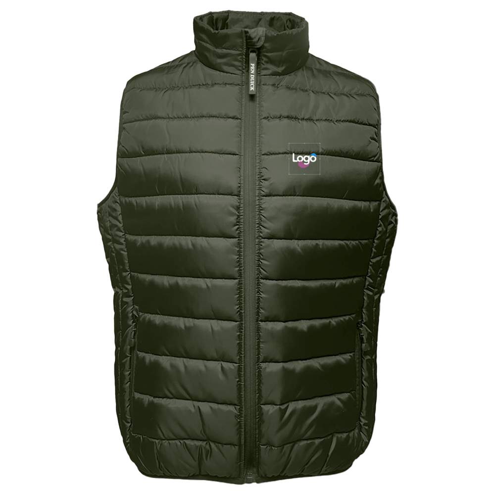 Bodywarmer para hombre en poliéster reciclado. Material acolchado. Cierre con cremallera y tirador. Bolsillos laterales con tiradores de plástico. Solapa interior contra el viento. Bolso interior con cremallera. Protección del mentón. Costuras elásticas en las mangas. Composición: Exterior: 100% poliéster 260T. Forro: 100% poliéster reciclado. Posibilidad de personalización en bordado para añadir su logo o visuel.