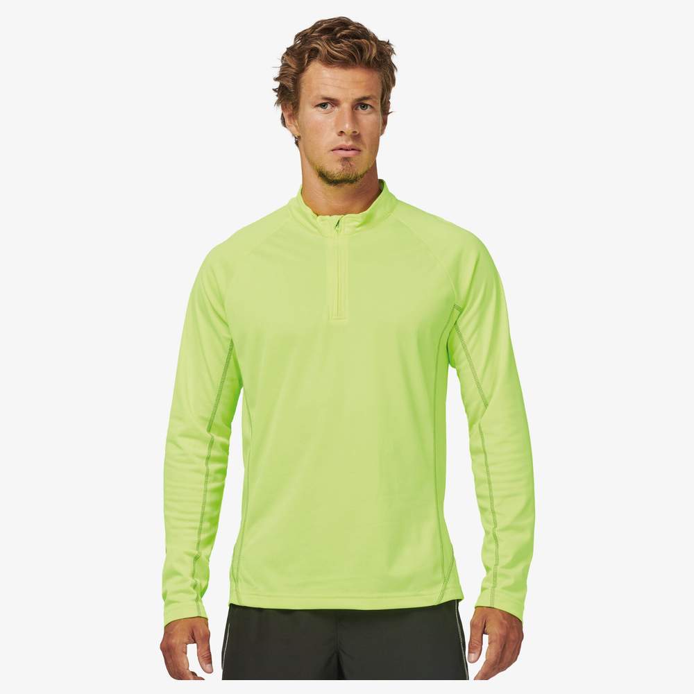 Esta sudadera de running 1/4 zip para hombre está diseñada en 100% poliéster poltricot, ofreciendo confort y rendimiento durante sus actividades deportivas. Sus mangas raglan aseguran una libertad de movimiento óptima, mientras que las costuras contrastantes añaden un toque de estilo. Esta prenda es ideal para corredores y amantes de los deportes al aire libre. También es personalizable, permitiendo agregar su logo o cualquier otro diseño de su elección en bordado.