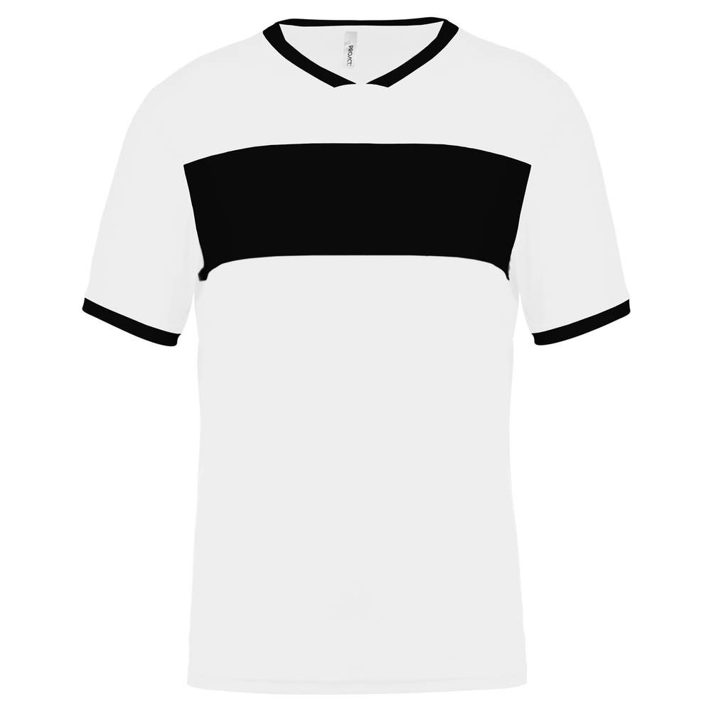 Esta camiseta de manga corta para niño está diseñada en 100% poliéster con una malla interlock para un confort óptimo. Ofrece un secado rápido, facilitando la práctica de actividades físicas. Su cuello en V está adornado con una banda de limpieza para un mantenimiento cómodo. Las mangas montadas y los paneles de pecho, cuello y puños contrastantes le confieren un estilo deportivo y dinámico.