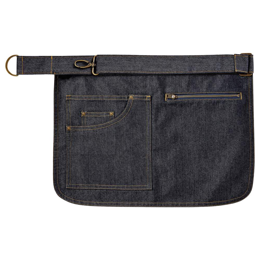 Este delantal de cintura está diseñado para un acceso práctico al bolsillo. Cuenta con un bolsillo con cremallera YKK y un bolsillo de estilo vaquero. El cinturón ajustable está integrado en la tela y se cierra con un mosquetón y un aro D de latón envejecido. Fabricado en lino de algodón pesado, presenta un dobladillo redondeado. Composición: 100% algodón (excepto color denim: 70% algodón, 30% poliéster). Este delantal puede personalizarse con su logo o imagen, ofreciendo una solución ideal para la identificación de su empresa o para un regalo promocional único.