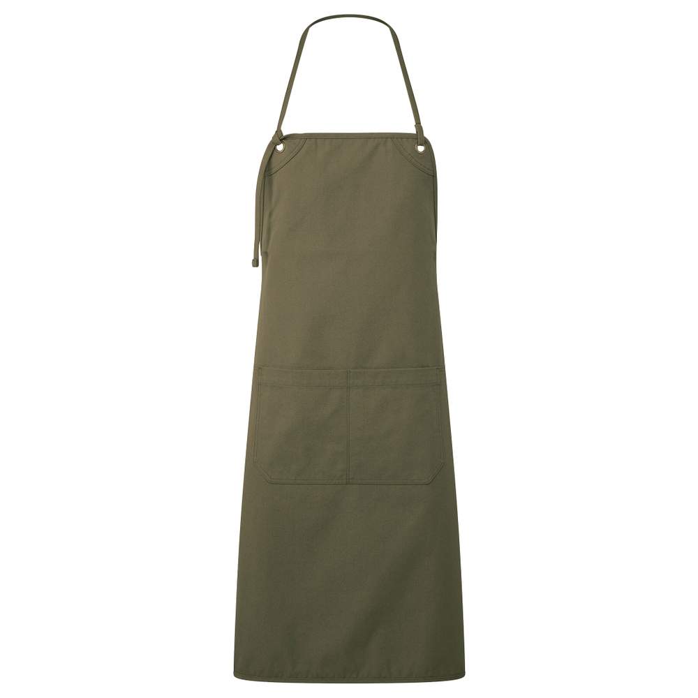 Delantal con mandil de lona gruesa con bordes redondeados. Este modelo 2 en 1 se puede llevar alrededor del cuello o a la cintura. Las costuras redondeadas y las líneas sobrias le confieren un aspecto cuidado, mientras que los ojetes añaden un toque de elegancia industrial. El cuello es ajustable y las cintas a la cintura a juego miden 90 cm. Dispone de dos bolsillos centrales, cada uno mide 14,5 cm de ancho por 18 cm de largo.