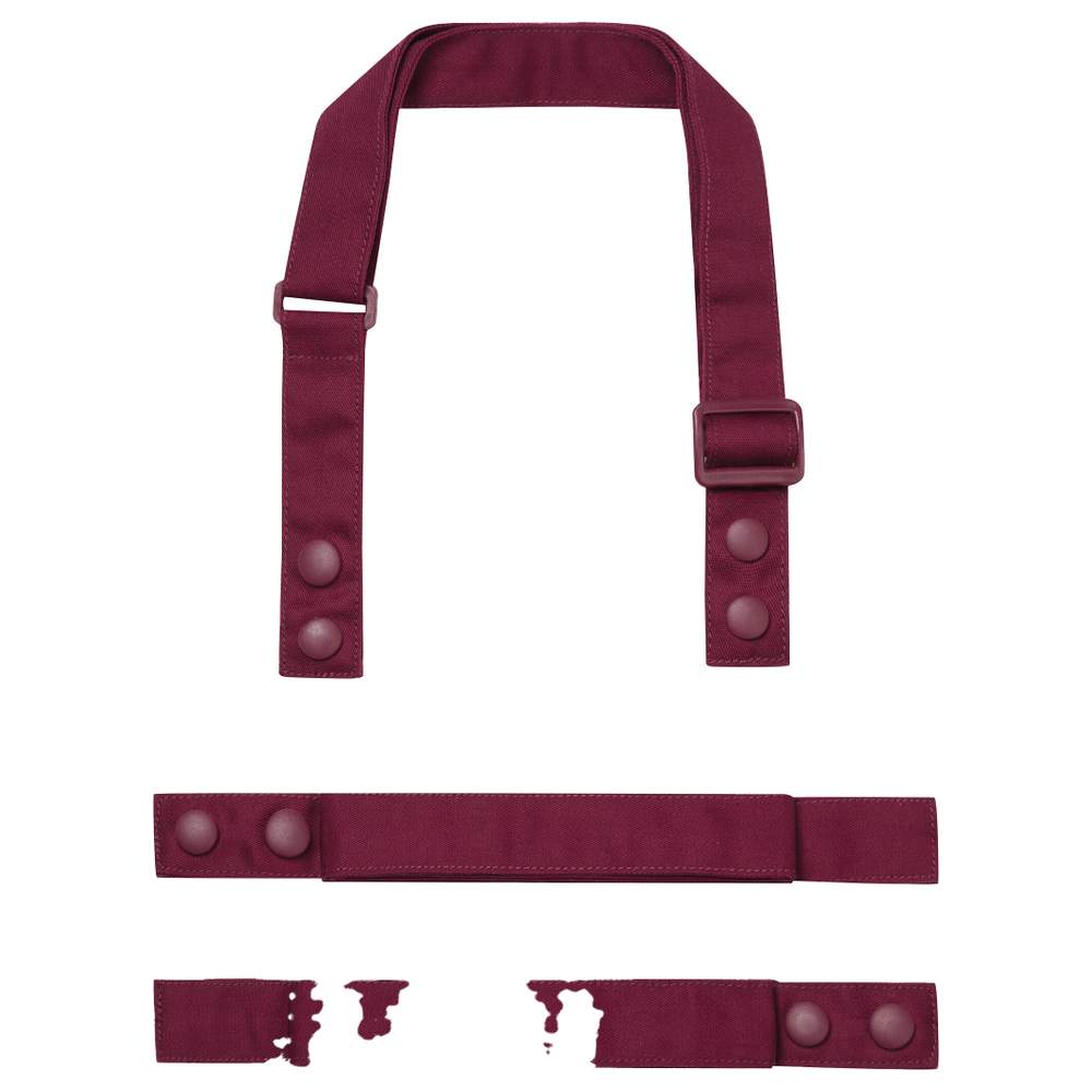 Tirantes de delantal diseñadas para ser fijadas en el cuerpo del delantal PR190. Este conjunto incluye una tira para el cuello y dos tiras para la cintura, permitiendo una adaptación personalizada. Las tiras están equipadas con botones de presión robustos, facilitando la fijación y el retiro. La tira del cuello está dotada de un bucle deslizante ajustable para un ajuste óptimo. Las tapas de botones de presión del mismo color aseguran un acabado cuidado y homogéneo.