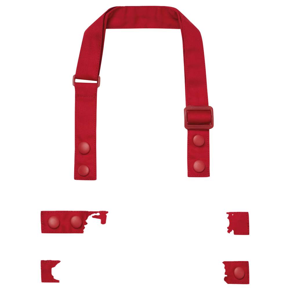 Tirantes de delantal diseñadas para ser fijadas en el cuerpo del delantal PR190. Este conjunto incluye una tira para el cuello y dos tiras para la cintura, permitiendo una adaptación personalizada. Las tiras están equipadas con botones de presión robustos, facilitando la fijación y el retiro. La tira del cuello está dotada de un bucle deslizante ajustable para un ajuste óptimo. Las tapas de botones de presión del mismo color aseguran un acabado cuidado y homogéneo.