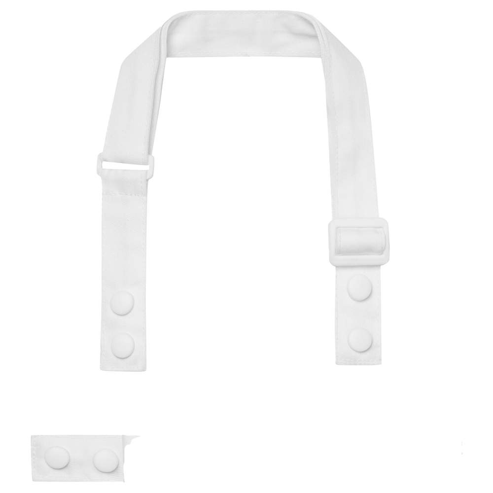 Tirantes de delantal diseñadas para ser fijadas en el cuerpo del delantal PR190. Este conjunto incluye una tira para el cuello y dos tiras para la cintura, permitiendo una adaptación personalizada. Las tiras están equipadas con botones de presión robustos, facilitando la fijación y el retiro. La tira del cuello está dotada de un bucle deslizante ajustable para un ajuste óptimo. Las tapas de botones de presión del mismo color aseguran un acabado cuidado y homogéneo.
