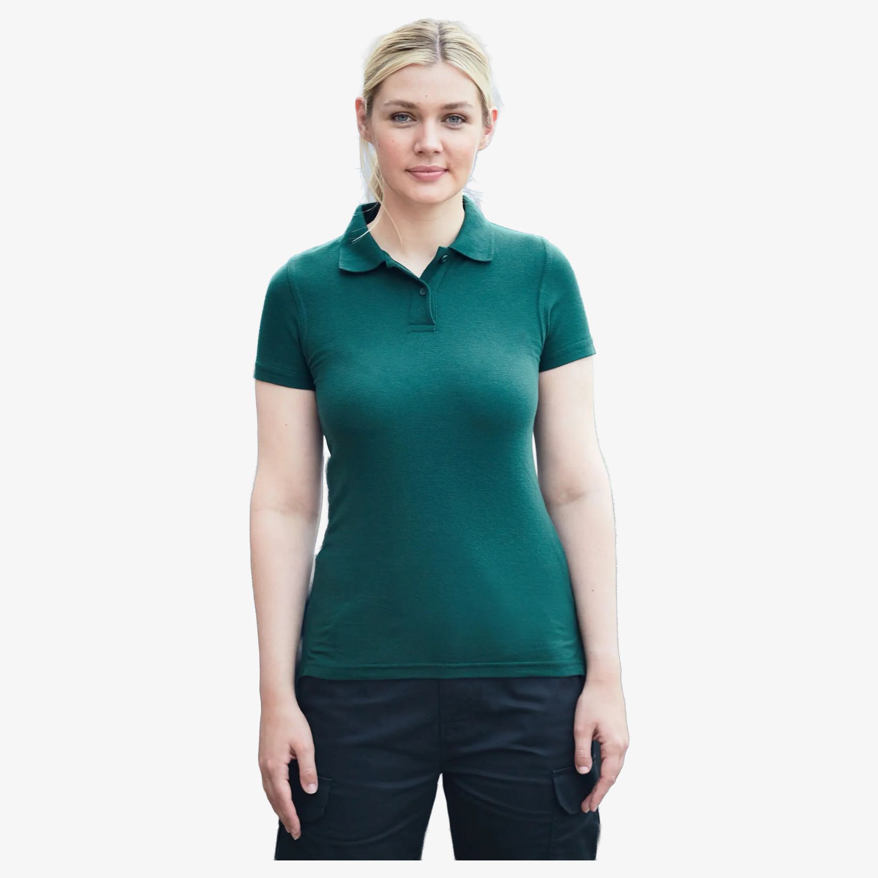 El Polo Pro Mujer es ideal para uniformes y está disponible en una amplia gama de tallas para vestir a todos los equipos. Presenta un cuello acanalado y una banda en el cuello del mismo color, doble costura para mayor durabilidad, y una solapa con dos botones del mismo tono. Su corte es moderno y femenino.