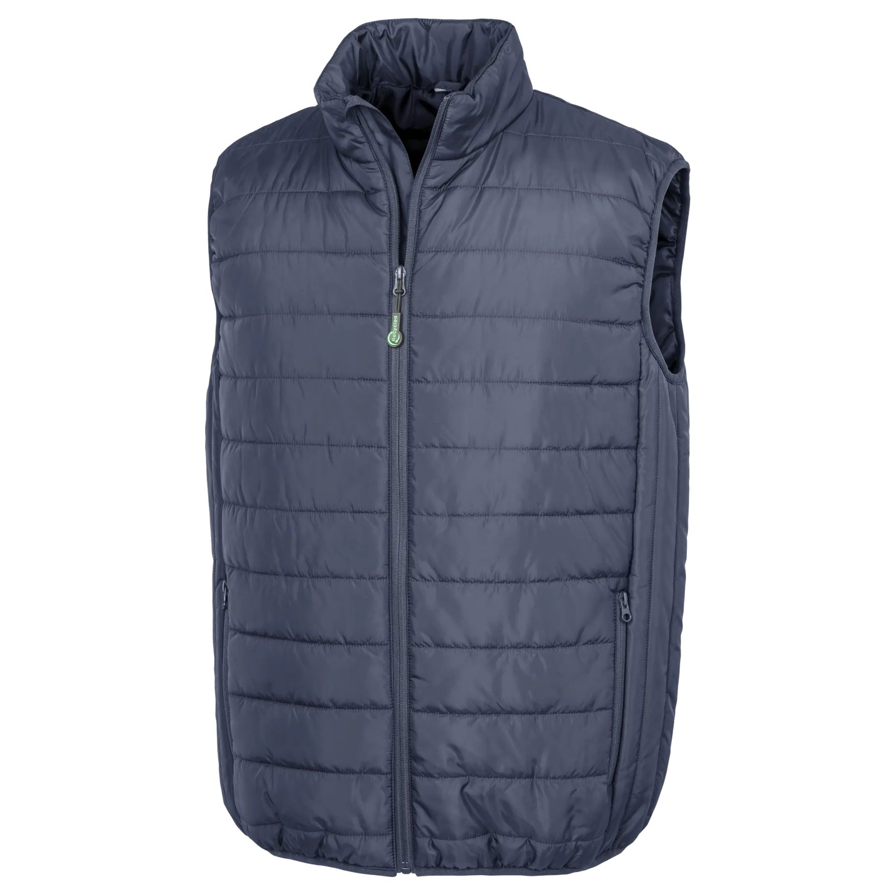 El chaleco acolchado reciclado tipo bodywarmer es un chaleco acolchado más largo, con paneles laterales verticales para limitar las pérdidas de calor. Cuello alto, cierre con cremallera con protector de barbilla, bolsillos laterales con cremallera y bolsillo interior. Utilizable para un atuendo de trabajo o asociativo, con opción de personalización.
