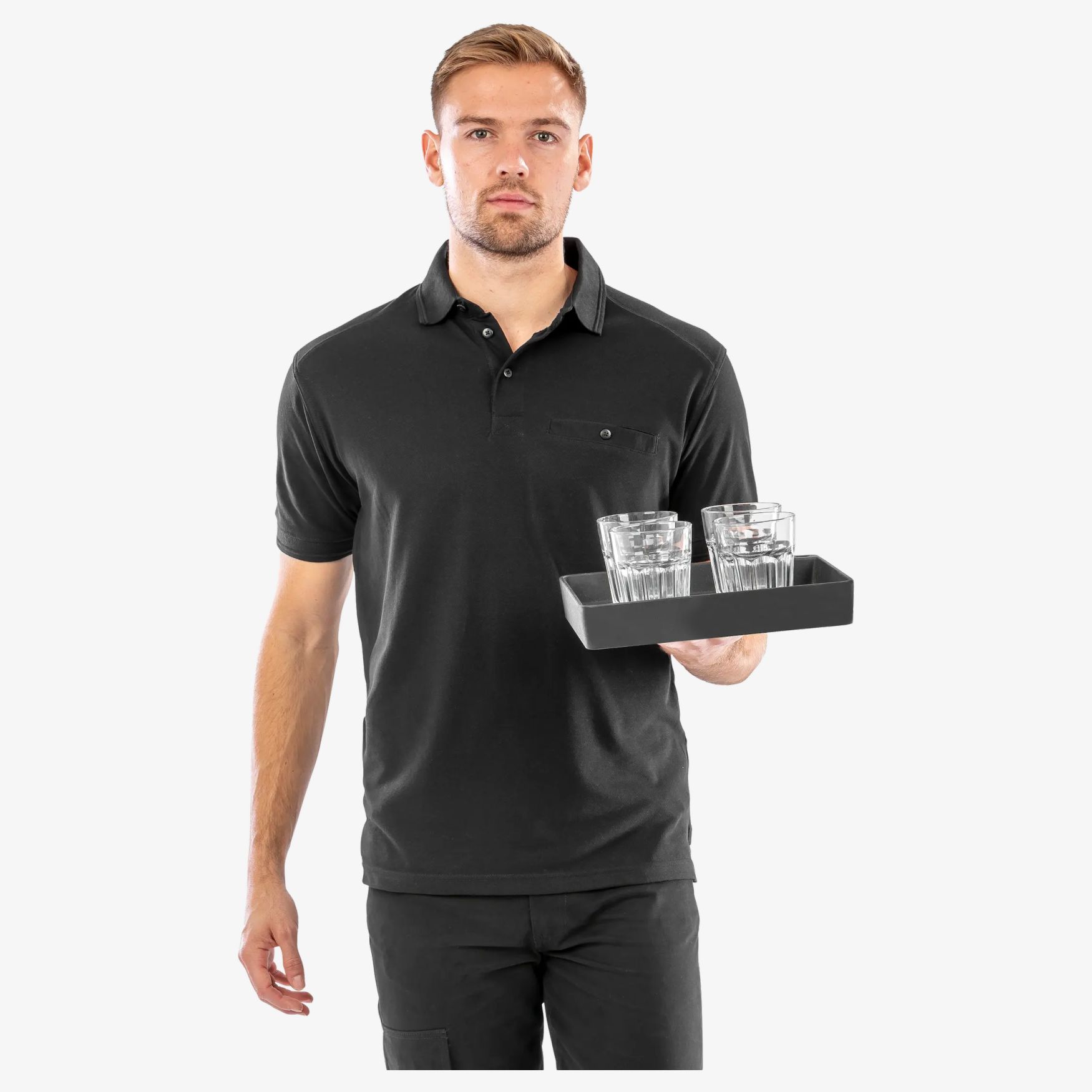 El polo Apex con bolsillo es un polo con tapeta reforzada de 3 botones, bolsillo de pecho ribeteado con cierre de botón y cuello recto. Costuras de doble pespunte, refuerzos de hombros de doble capa y aberturas laterales reforzadas.