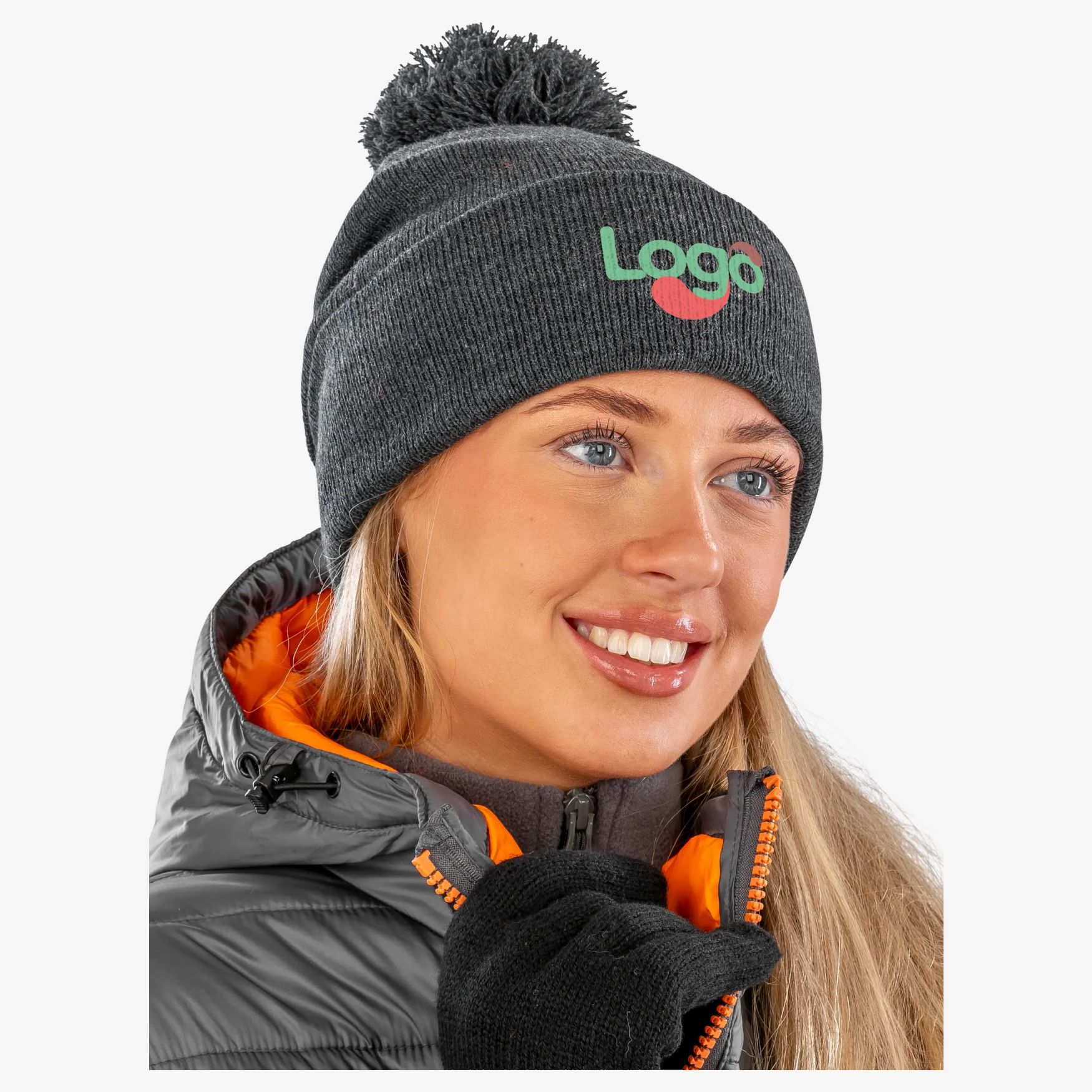El Pompom Beanie es un gorro con pompón de punto grueso, de doble capa y gran vuelta doblada, diseñado para una cobertura uniforme en el día a día. Composición: 100 % poliacrílico, excepto gris: 50 % poliéster, 50 % poliacrílico.