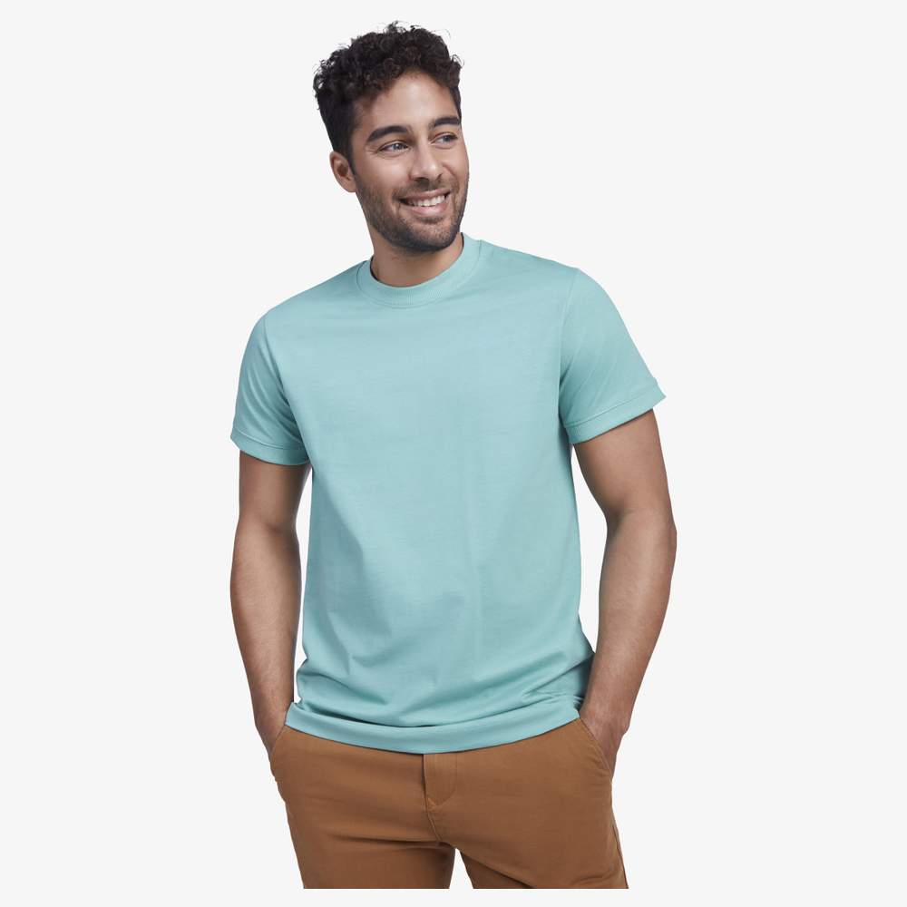 Camiseta de mangas cortas y algodón grueso para hombre. Acabados de las mangas y gran cuello redondo en costura 2x1. Costuras reforzadas cubiertas en el cuello. Costuras laterales. Logo a juego en el dobladillo izquierdo. Costura ancha en el dobladillo. Etiqueta desmontable.